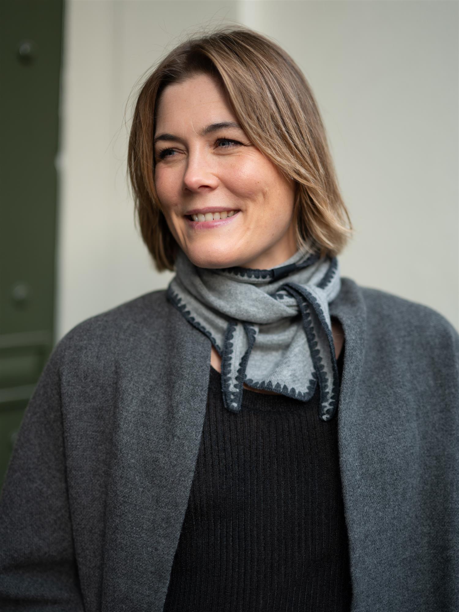Mina Stitched Merino Scarf Lt Grey Mel fra Christian Aks.
