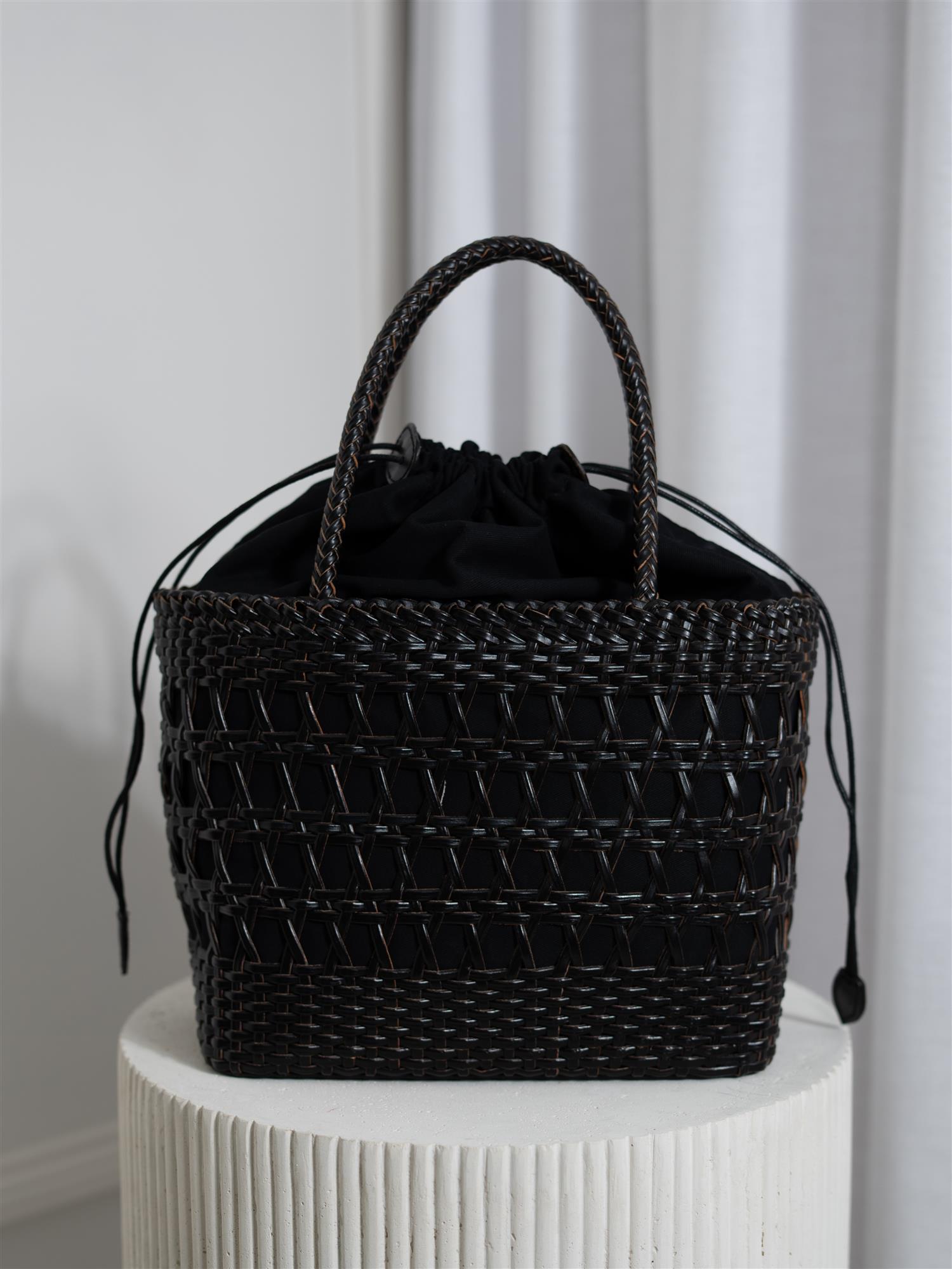 Flettede detaljer gir en unik tekstur og et eksklusivt uttrykk, mens den medfølgende bomullsposen sørger for at eiendelene oppbevares trygt.