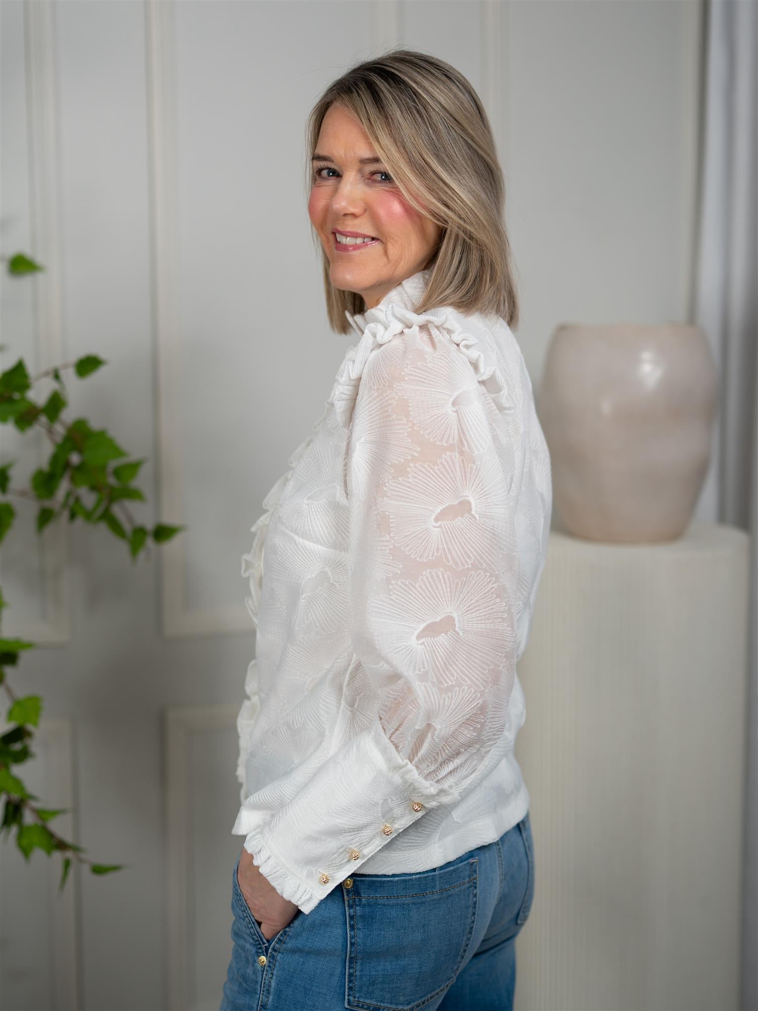 En lekker bluse som egner seg til festlige anledninger, og til champagne-frokost sammen med venninner!
