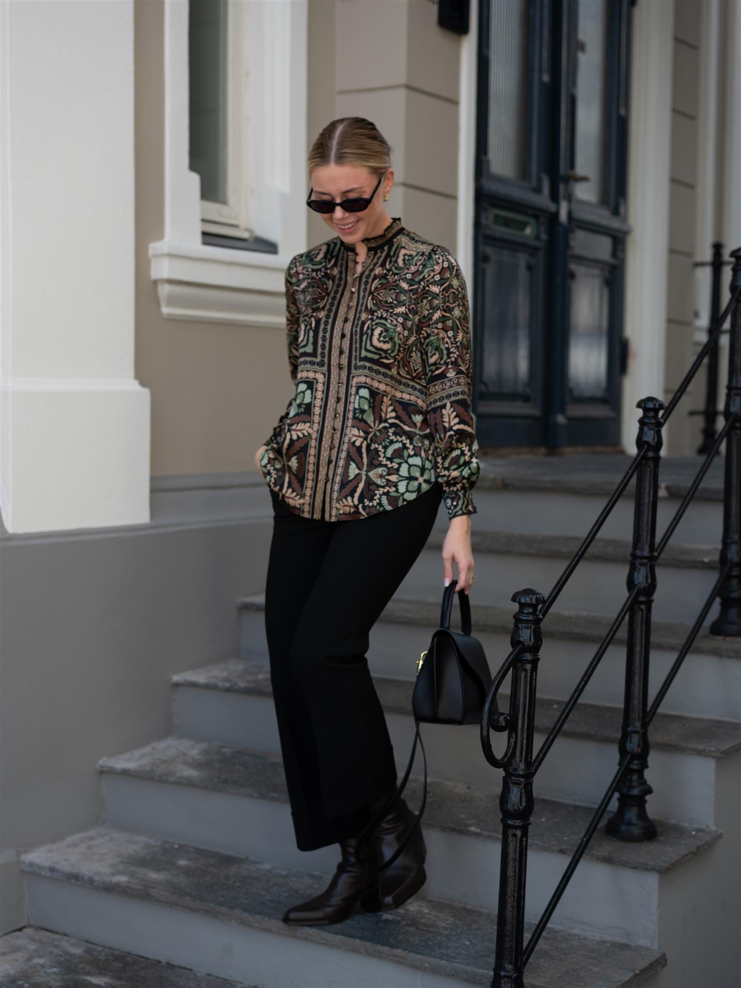 Klassisk og delikat bukse i sort fra Cambio! En ny favoritt! Deilig kvalitet som faller fint! God stretch og kort i modellen med en liten brett og sleng nede! Et perfekt base plagg å ha med inn i høsten!