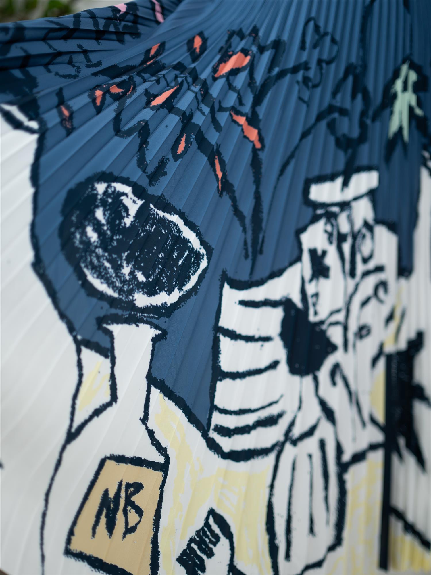 Plisset skjørt med et elegant, fargerikt grafisk trykk. Designet med en elastisk linning med MUNTHE-logoen. Trykket er laget i samarbeid med den London-baserte kunstneren Niamh Birch. Skjørtet har god lengde og god stretch i livet.