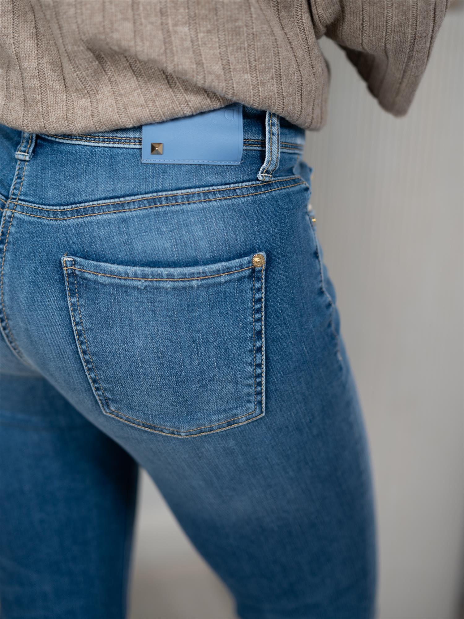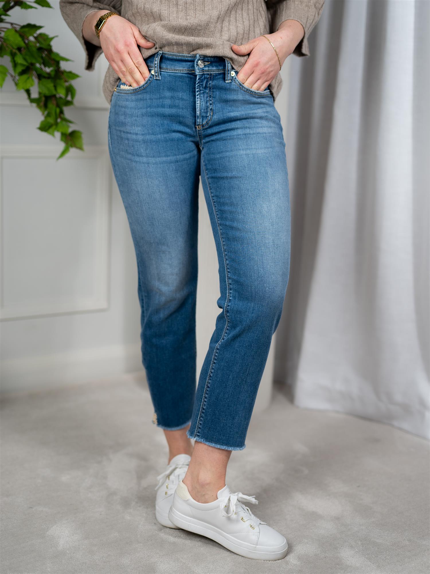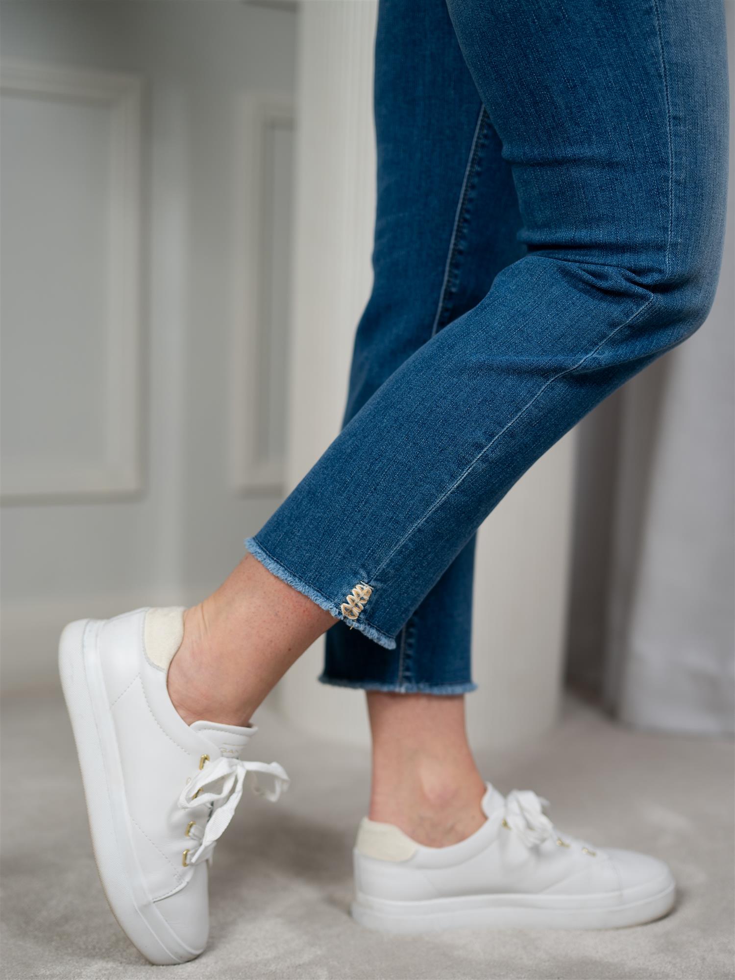 Piper short i en lys blå farge fra Cambio. Buksen er ankelkort, heklet detalj på lommen og har god stretch. Piper har en røff kant nederst med en liten splitt. Lommer både foran og bak. Buksen har normal høyde i livet.
