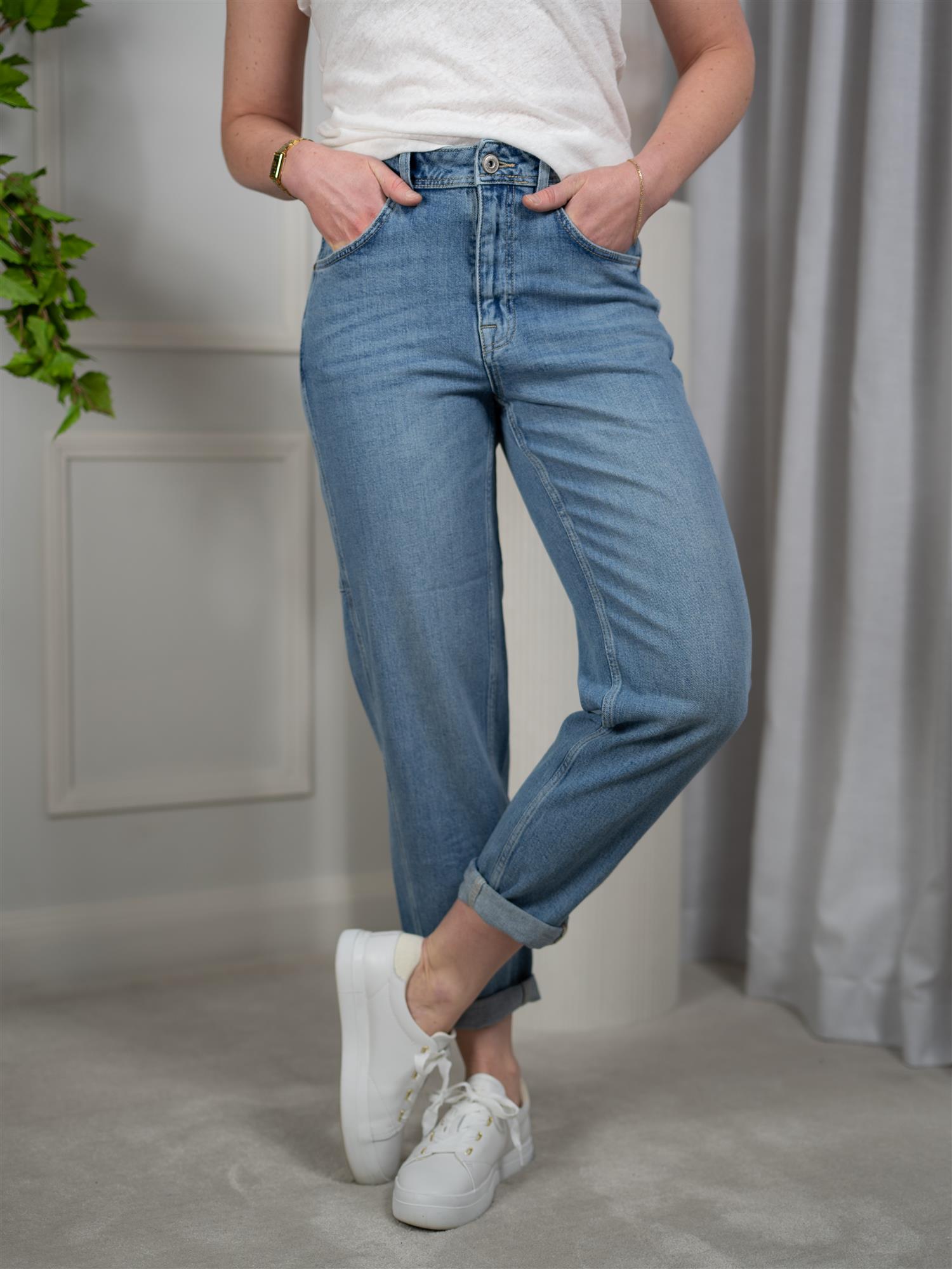 MMAymen Galleon Jeans er et stilig og komfortabelt valg for enhver kvinne som ønsker å oppdatere garderoben sin. Disse jeansene i mid blå farge gir en moderne look og er perfekte for hverdagsbruk. Ankelkort modell.