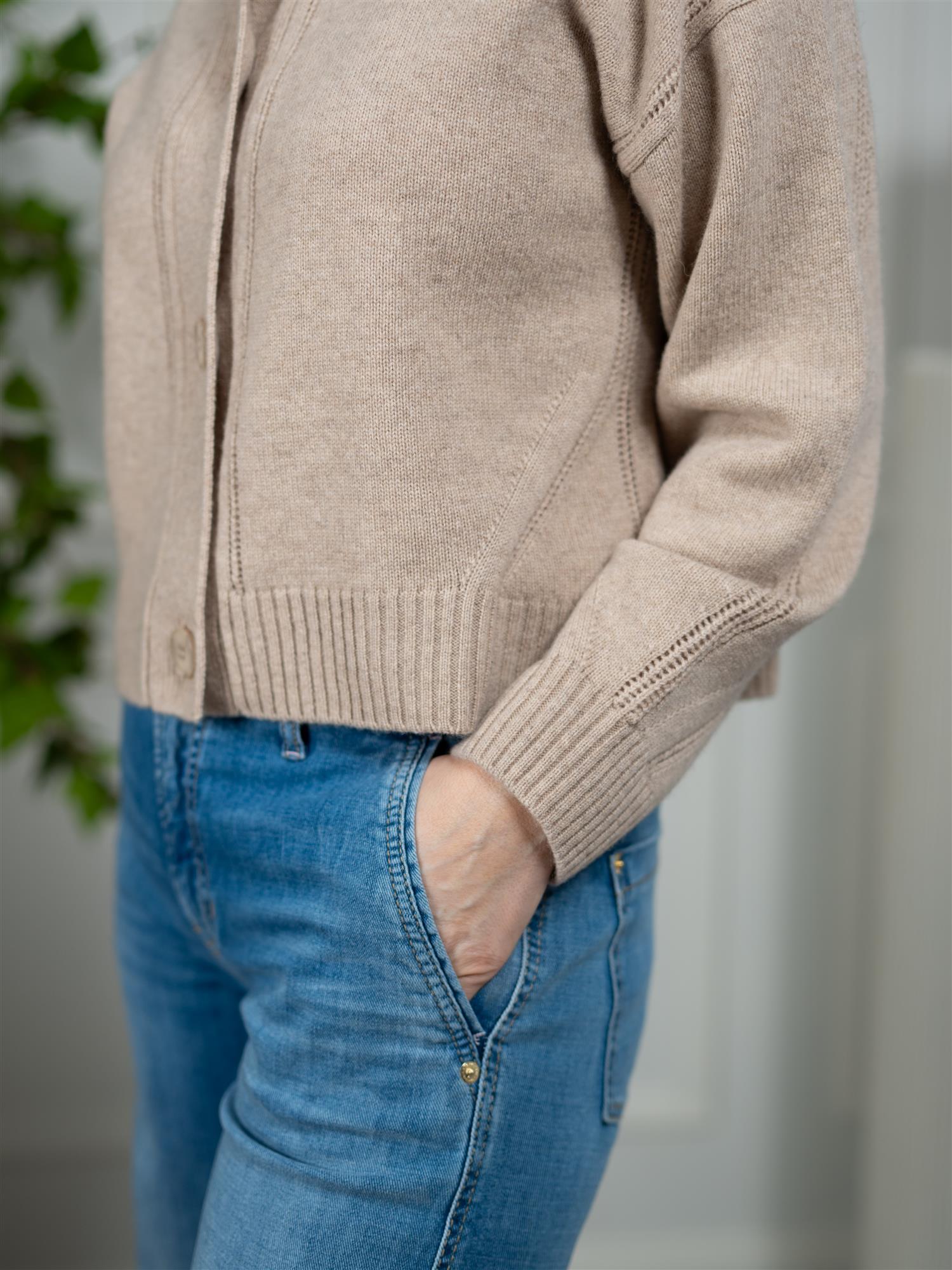 Delikat og tidløs cardigan i en nydelig beige farge fra Dear Dharma. Den er rett i modellen med store knapper i front. Cardiganen er finstrikket med røffe mønster som gir den det lille ekstra. Perfekt alene, men også til å slenge over seg på kalde dager.