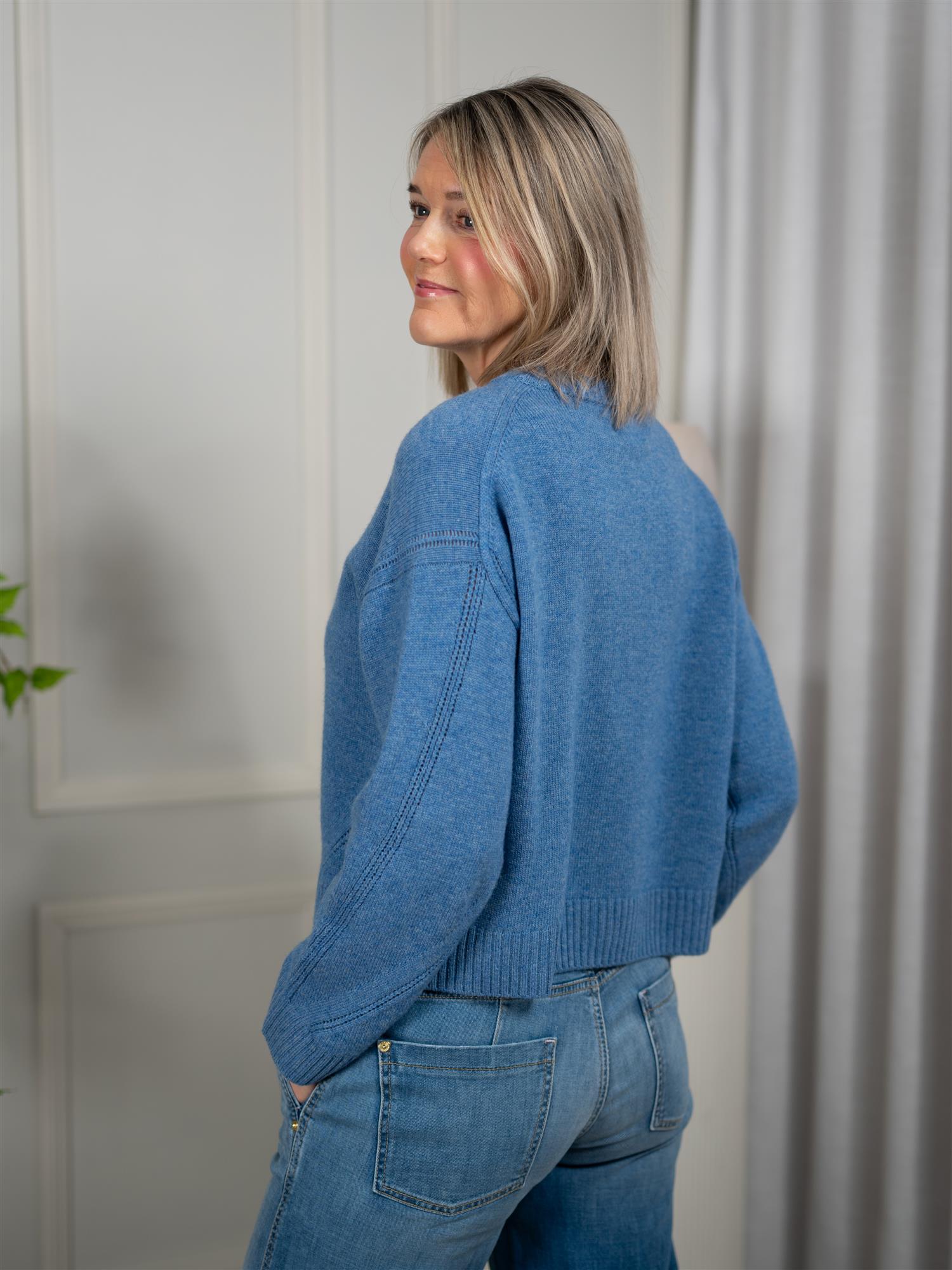 Delikat og tidløs cardigan i en nydelig blå farge fra Dear Dharma. Den er rett i modellen med store knapper i front. Cardiganen er finstrikket med røffe mønster som gir den det lille ekstra. Perfekt alene, men også til å slenge over seg på kalde dager.