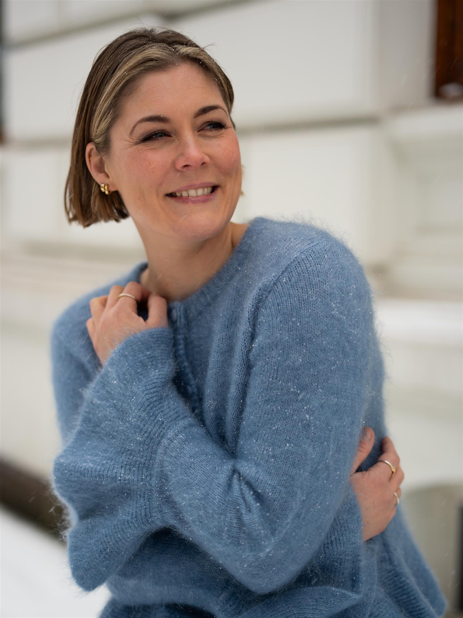 Maren Chunky Cardigan er en stilfull og komfortabel cardigan i denimblå farge, perfekt for å tilføre et trendy preg til antrekket ditt. Denne cardiganen er ideell for hverdagsbruk og gir en avslappet, men likevel moderne look. Designet med rund hals, volanger på ermene og i bunn, knapper i front og normal lengde.