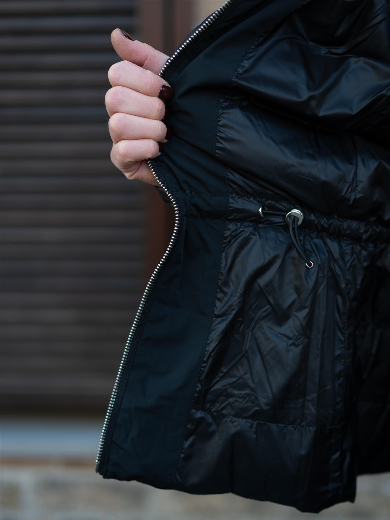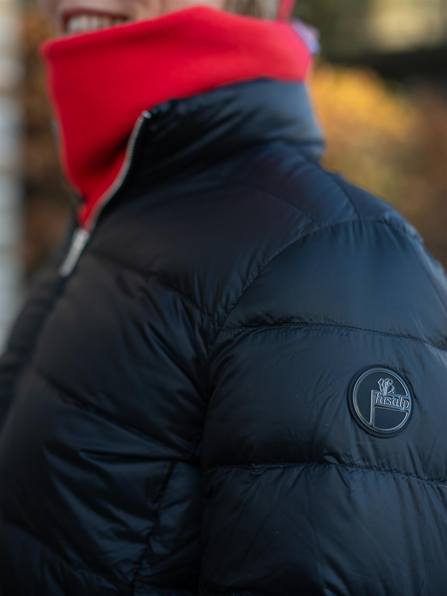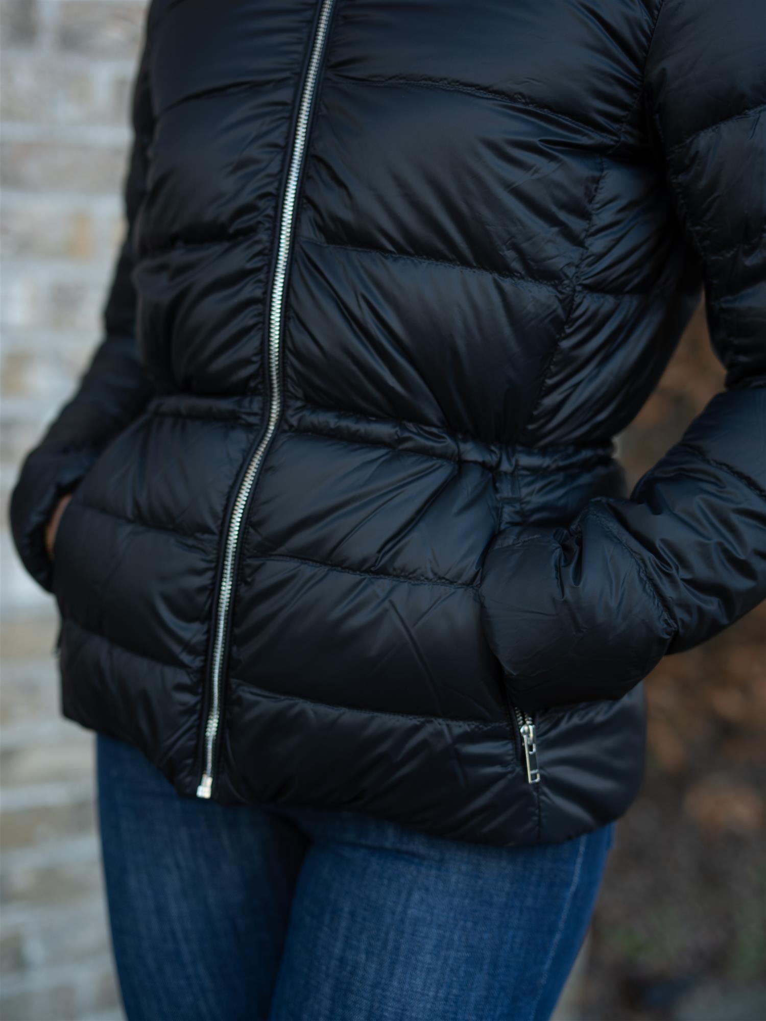Kerin fra Fusalp utmerker seg med sin feminine og glamorøse silhuett. Laget av vannavvisende teknisk stoff i sort. Designet med snøring i midjen med innstramming på innsiden som fremhever den feminine silhuetten. Jakken har sølvfarget glidelås og lommer i sidene.