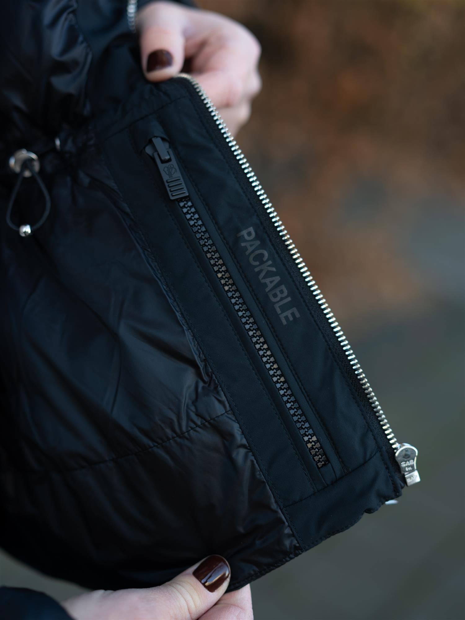 Denne vatterte dunjakken er ekstremt kompakt, og kan pakkes sammen og oppbevares i en innvendig lomme. Genialt for å spare plass i bagasjen.