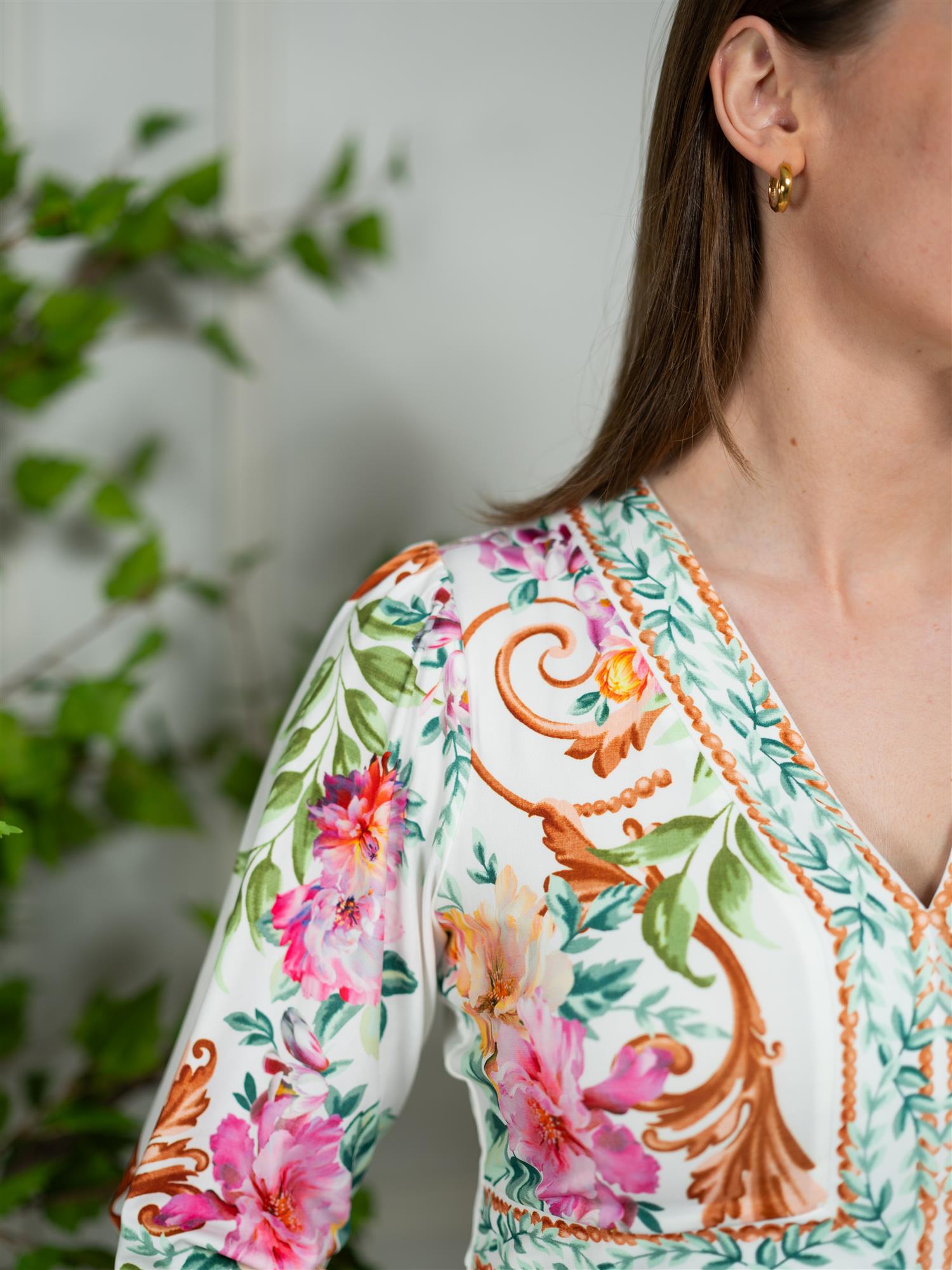 Den elegante Sariah kjolen i elfenben-farge er et perfekt valg for enhver anledning. Med sin myke og behagelige passform, gir den et stilrent uttrykk som fremhever din personlige stil. Designet med V-utringning, 3/4 ermer og liten puff i skuldrene. Kjolen er knelang.