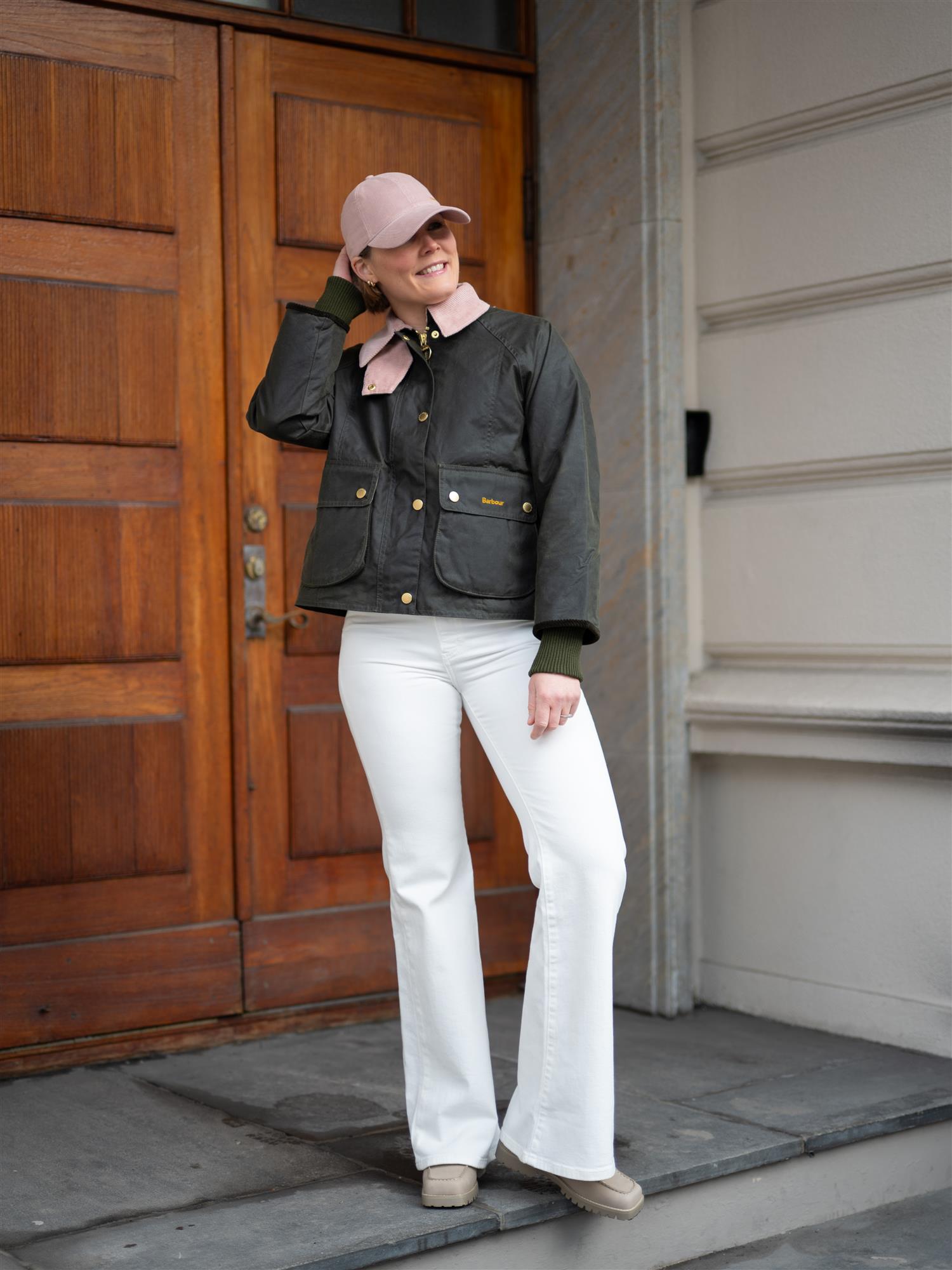 Beadnell-voksjakken har vært en del av Barbours signaturkolleksjon av voksede jakker siden 2010. Denne sesongen får Beadnell et moderne nytt utseende, ettersom Barbour Cropped Beadnell Waxed Jacket viser frem overdimensjonerte detaljer som den originale stilen. Med store, gullfargede trykknapper med merke og tradisjonelle sadellommer, er denne stilen komplett med en snorkrage og overdrevne elastiske mansjetter for et moderne preg. Delikat rosa kord-krage som kan kneppes opp for å bevare varmen.