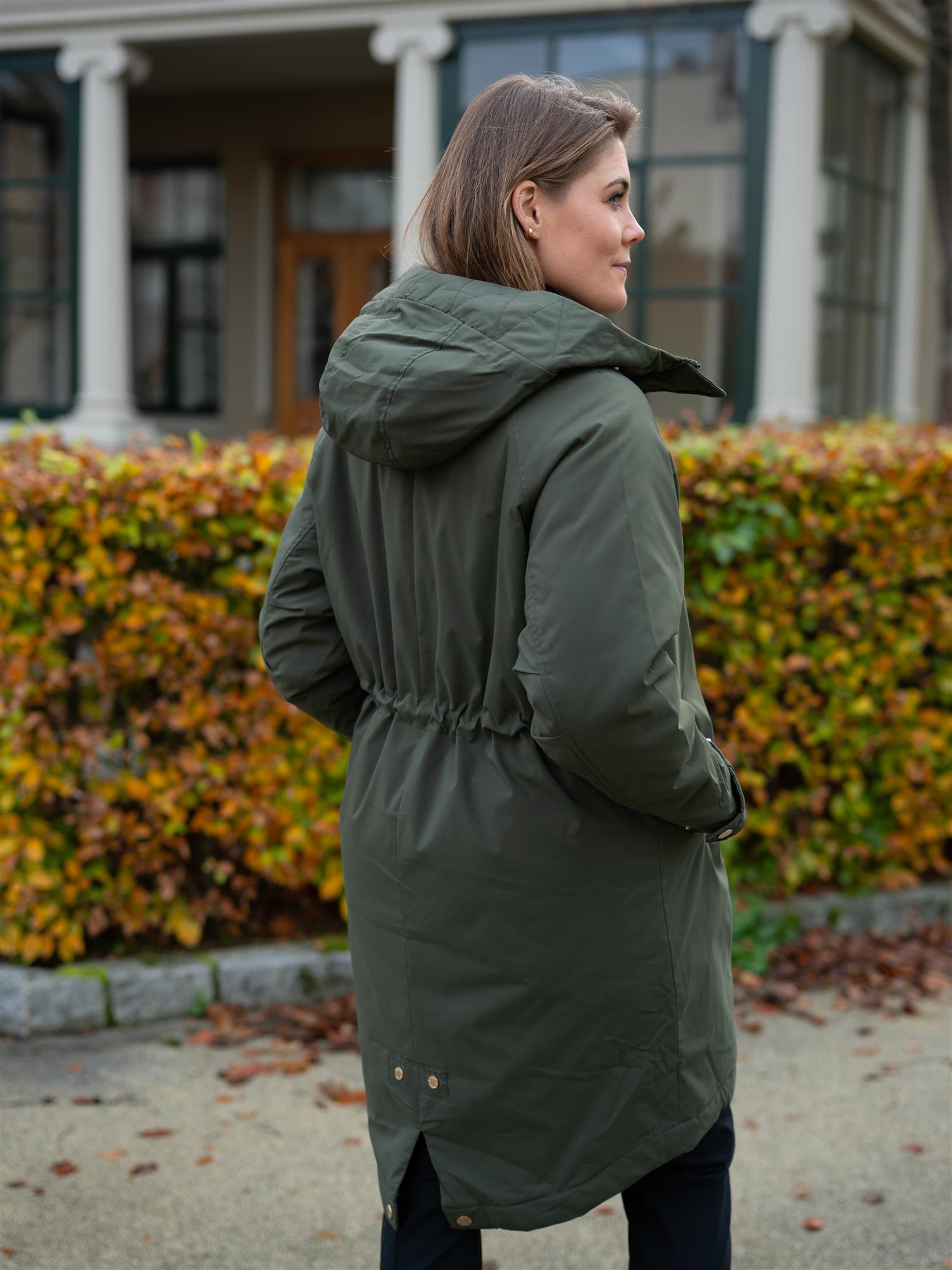 Stilig parkas fra Mos Mosh i grønn. Et must-have for kjølige dager. Jakken kombinerer tidløs stil med praktiske detaljer. Den har en lun hette og en normal til løs passform som gir en komfortabel og flatterende silhuett. Perfekt for lag-på-lag, og den ideelle følgesvennen gjennom kalde måneder. Lommer i sidene, justerbare mansjetter med knapp, Mos Mosh logo på ermet og mulighet for innstramming i midjen for en mer feminin silhuett.