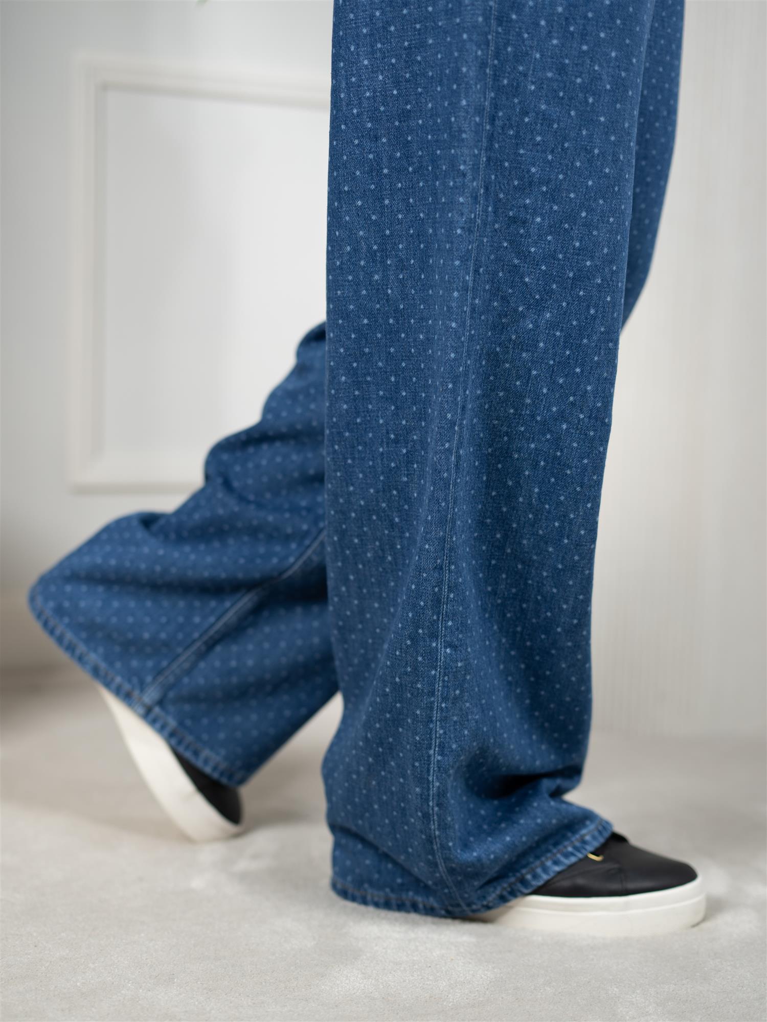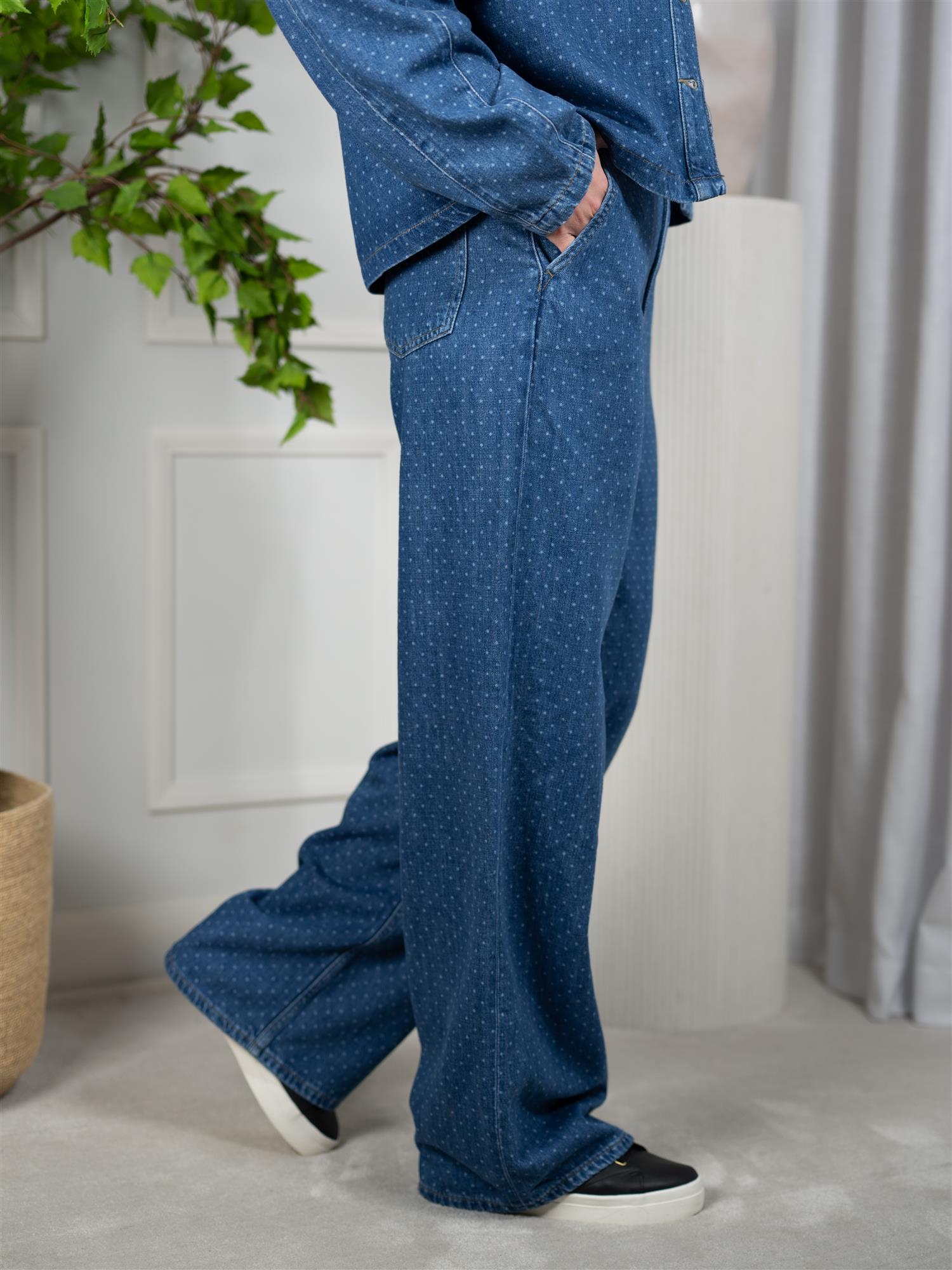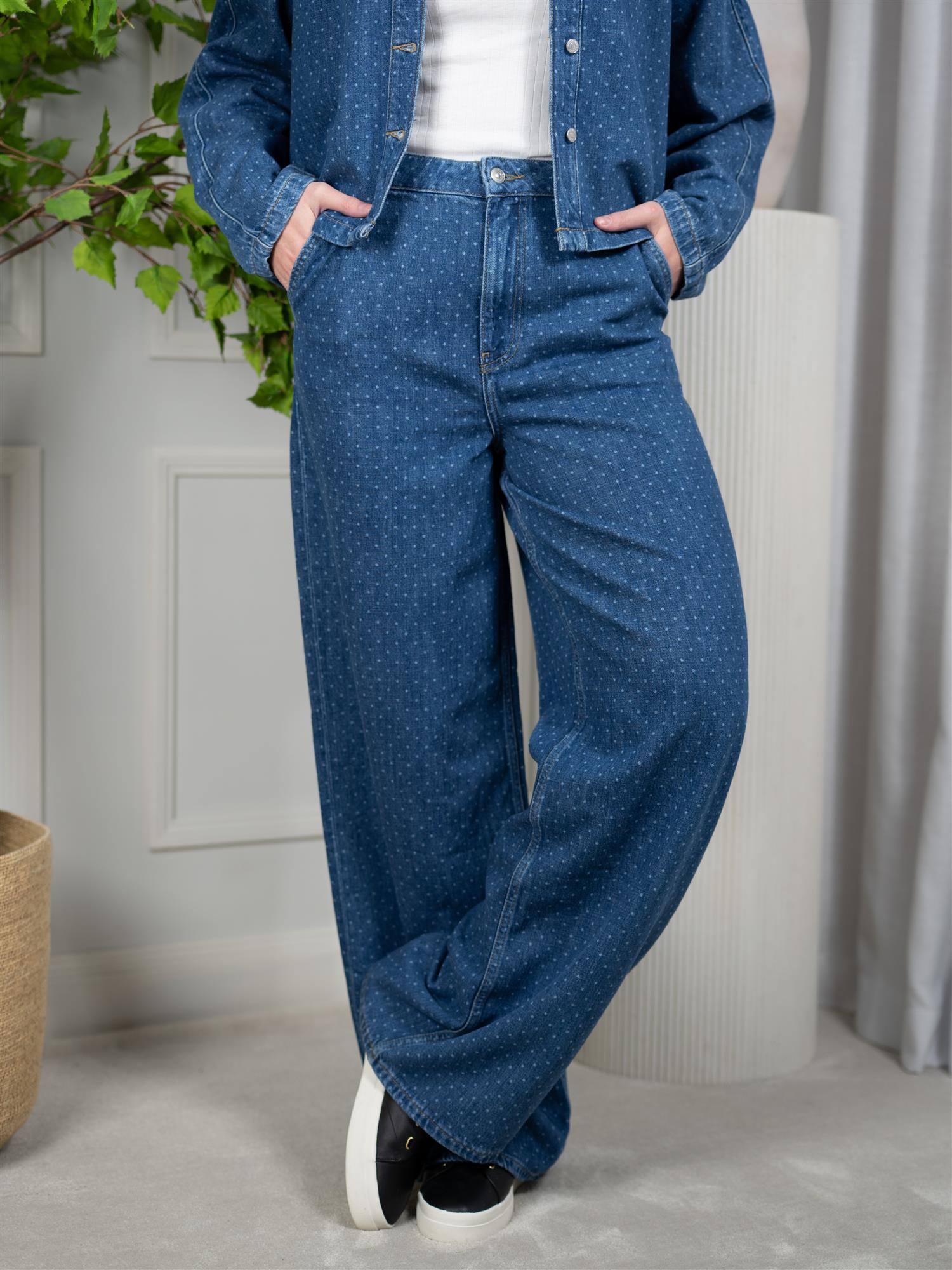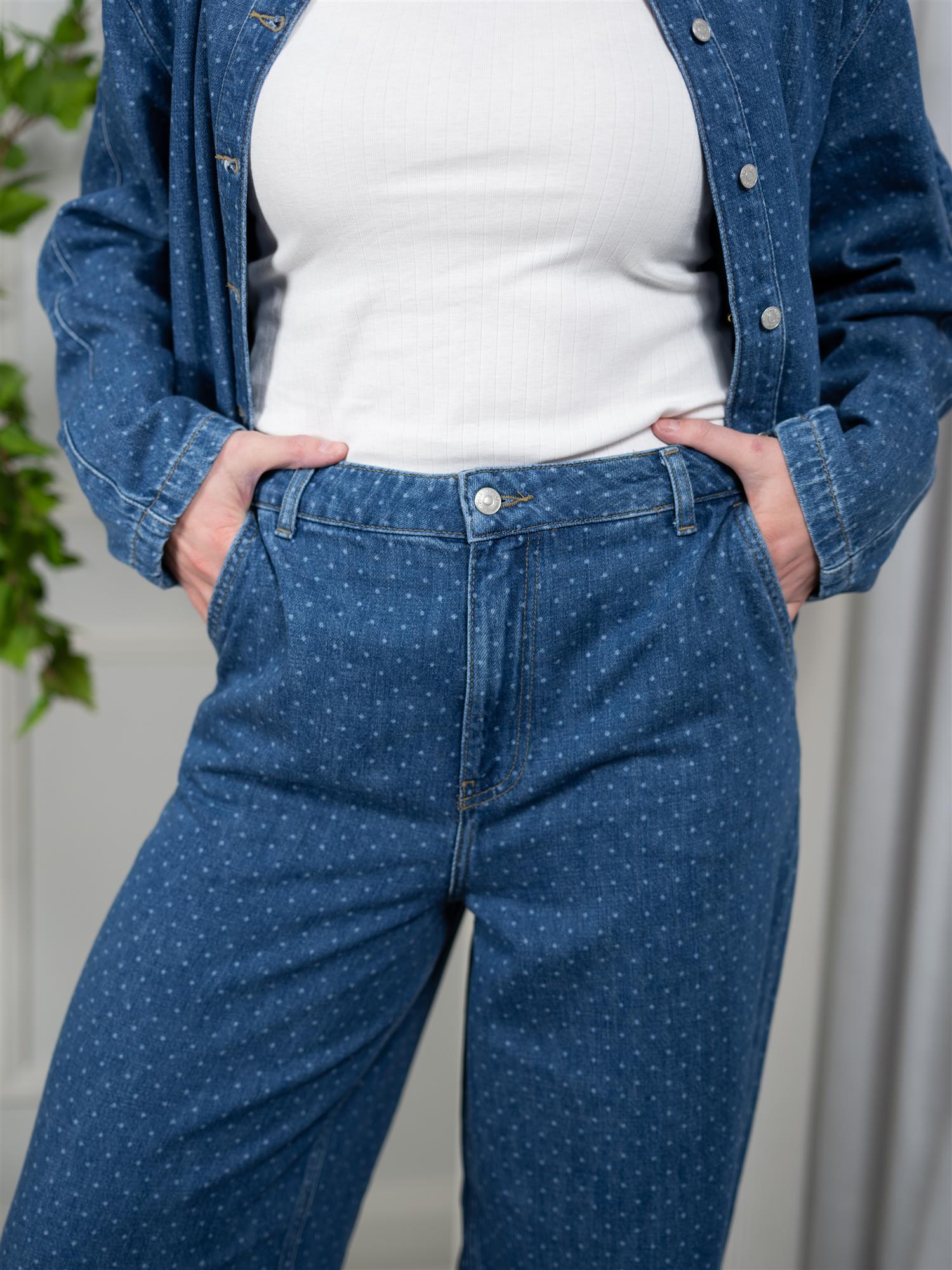 Jace i Mid Blue Dot har et tidløst polkadot mønster som gir buksen det lille ekstra. Den har en løs og rett passform som gir en moderne silhuett som passer både til hverdags og til finere anledninger. Buksen har en justerbar midje slik at den vil passe mange kroppsfasonger.