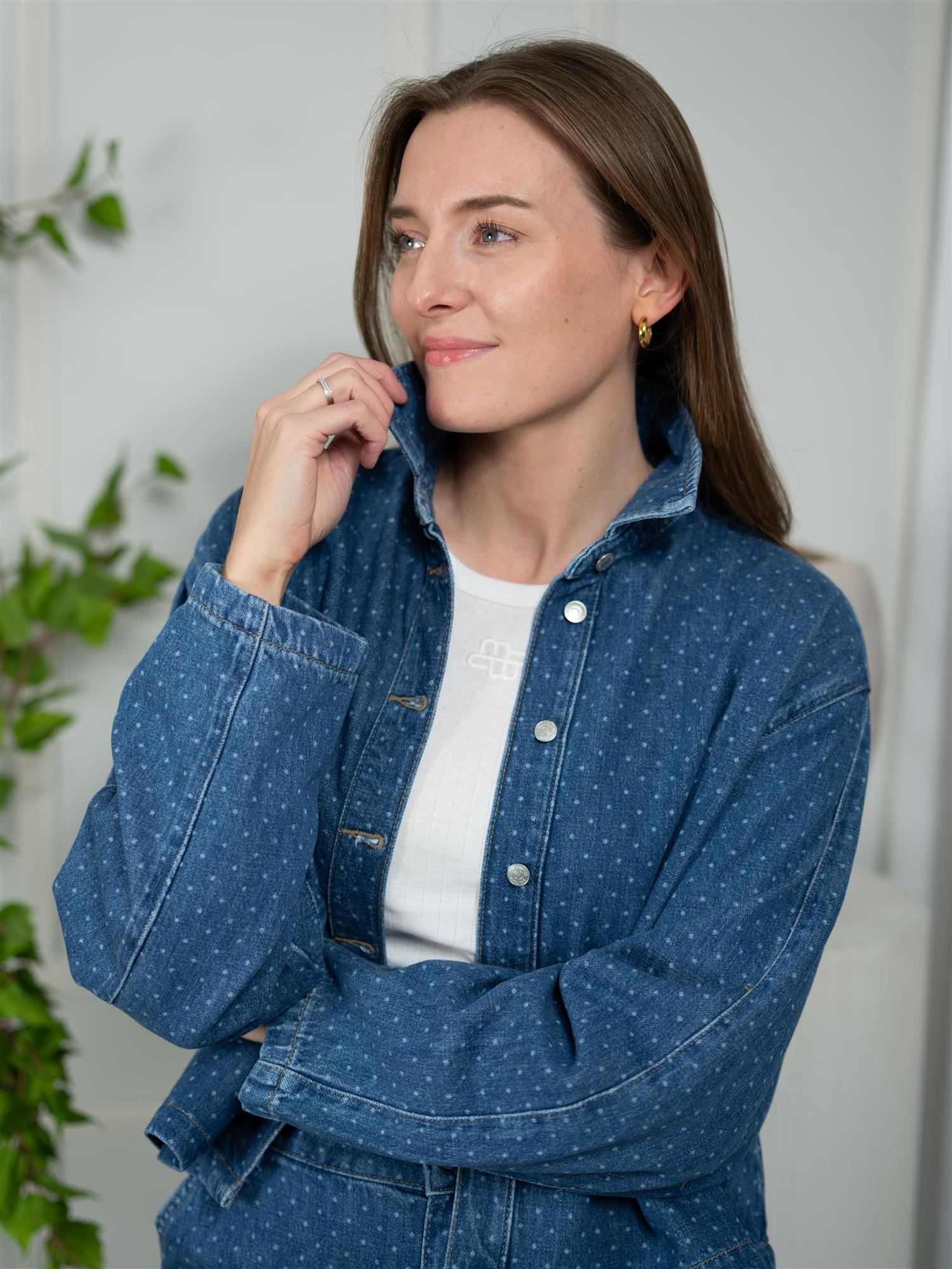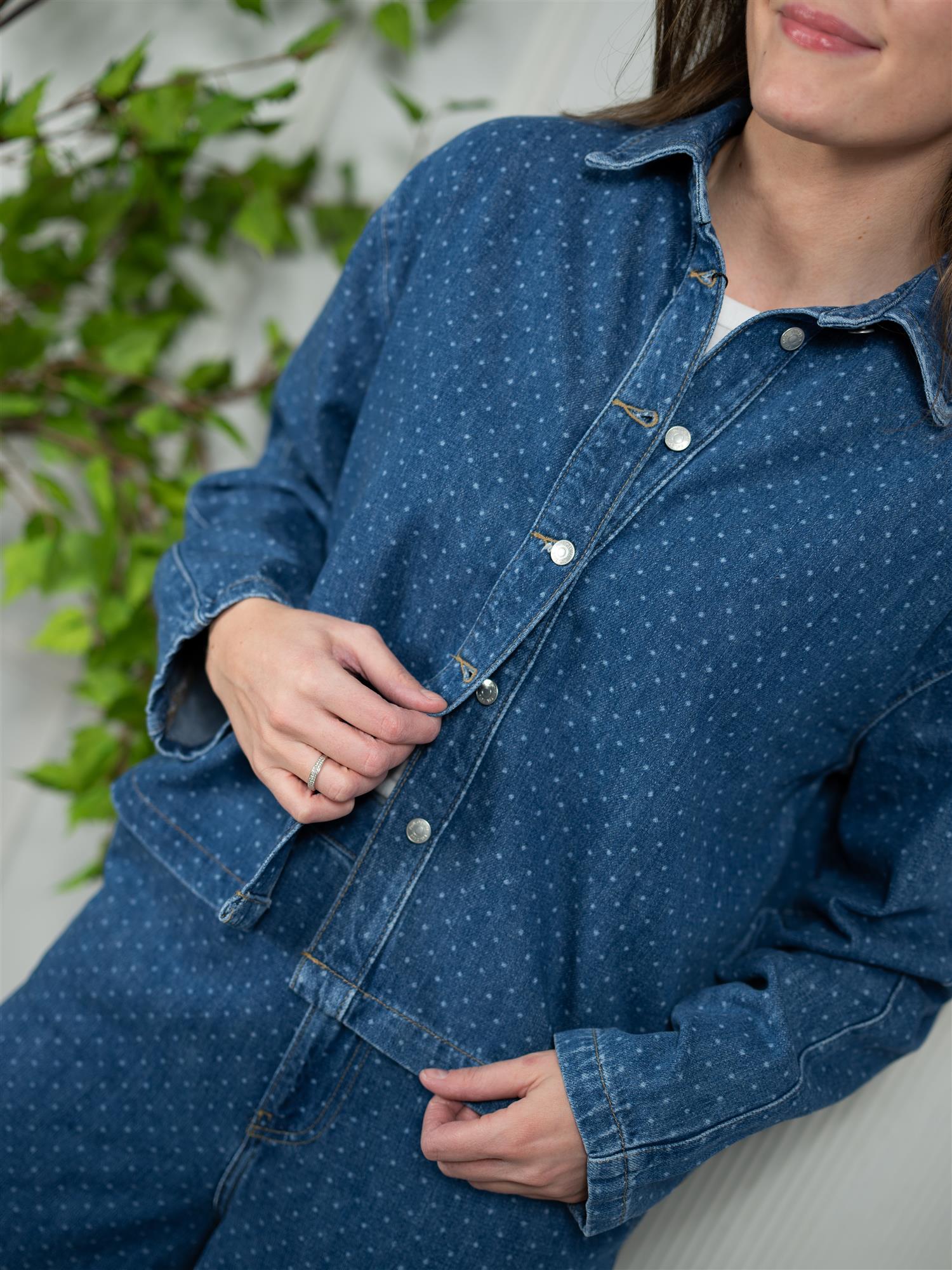 Marley Shirt har et tidløst polkadot mønster som gir skjorten det lille ekstra. Skjorten har en rett og løs passform, klassisk krage og knapper i front. Kombiner den med den matchende jeansen for et komplett sett.