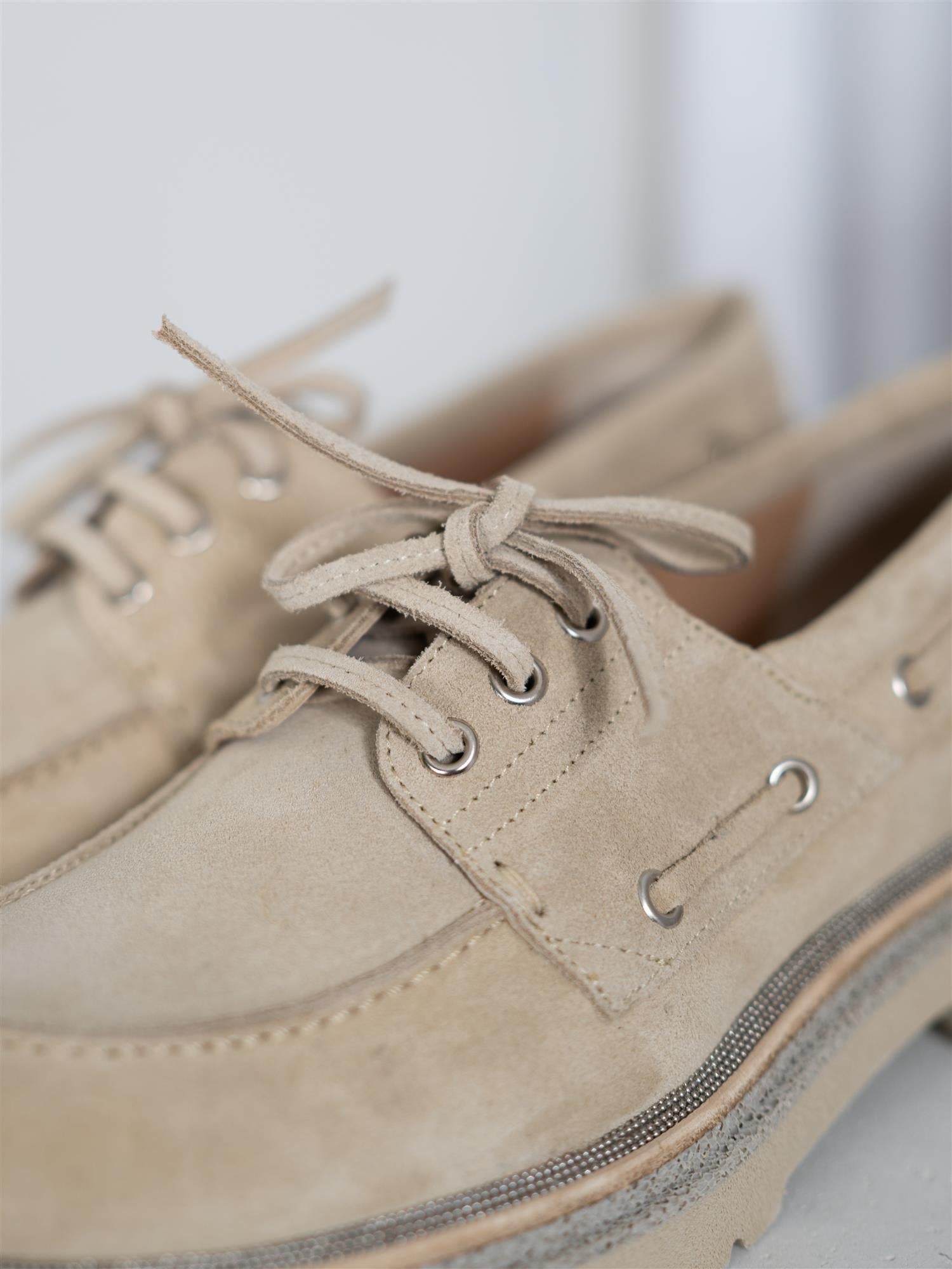 Elegante og komfortable damesko i semsket skinn fra Laura Bellariva - et perfekt valg for deg som ønsker stilrene sko med høy kvalitet og god passform. Skoene er laget i myk semsket skinn i en tidløs beige farge som passer like godt til hverdags som til mer pyntede antrekk.