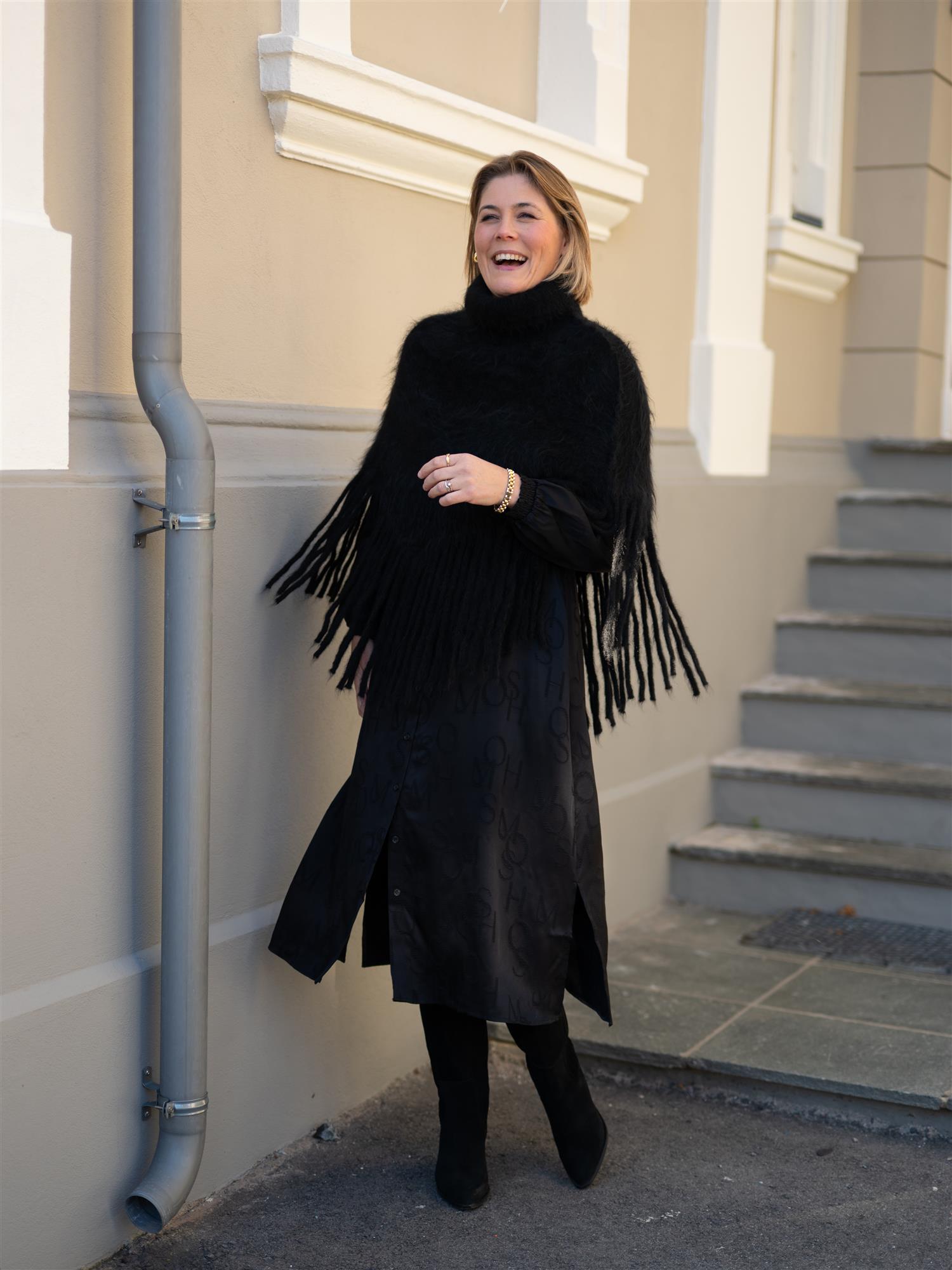 Kombiner med ballerina, pumps eller støvletter for et kledelig pent antrekk! Et lite tips- poncho over for ekstra varme. Ella&il sin Nikola Chunky Poncho passer perfekt!