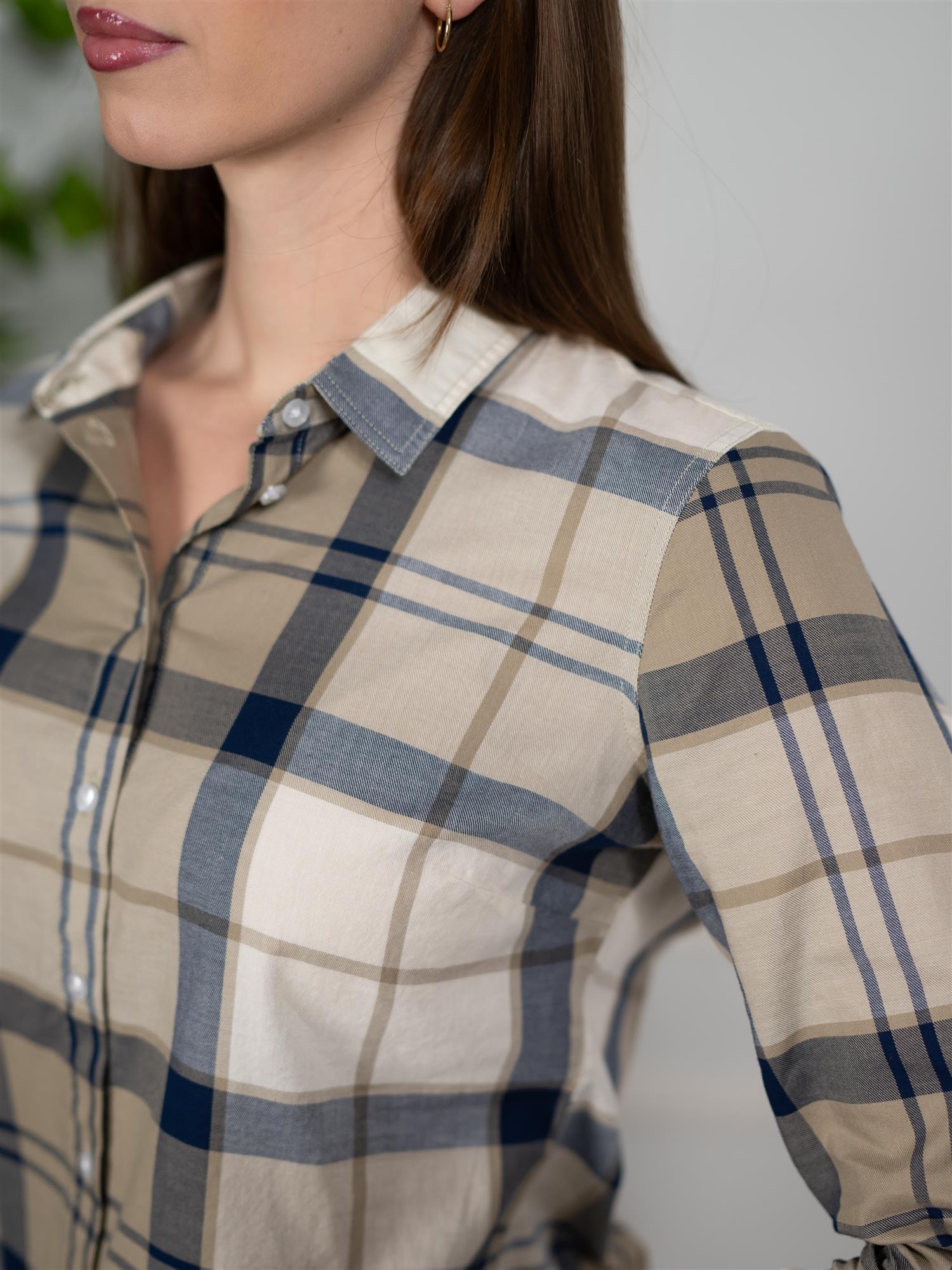 Tidløs skjorte fra Barbour i beige og blå toner. Vanlig passform med lett buet bunn. Bredon Check Shirt har lange ermer med normale mansjetter, spiss krage og knappelukking i front. Ingen stretch.
