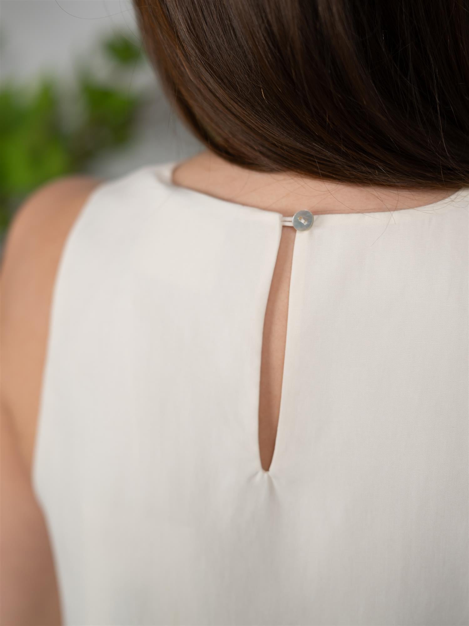 Dova Top i kremhvit fra ONE and OTHER til dame. Den lyse kremfargen gir toppen et klassisk uttrykk som enkelt kan styles til både hverdagsantrekk og mer pyntede anledninger. Toppen er uten ermer, har en rund hals og strikk nederst i kanten.