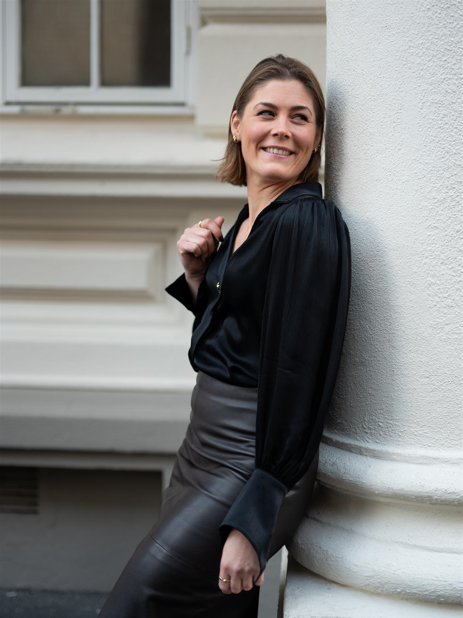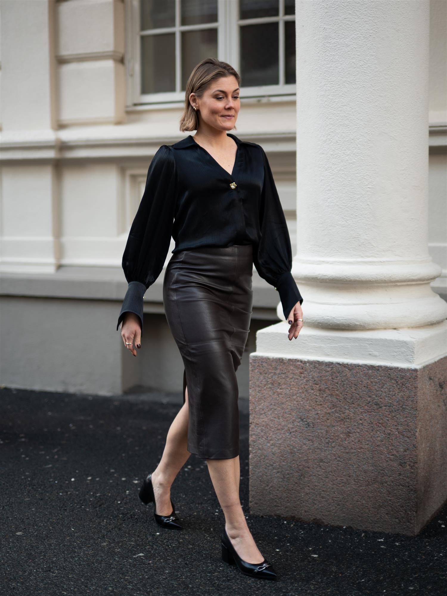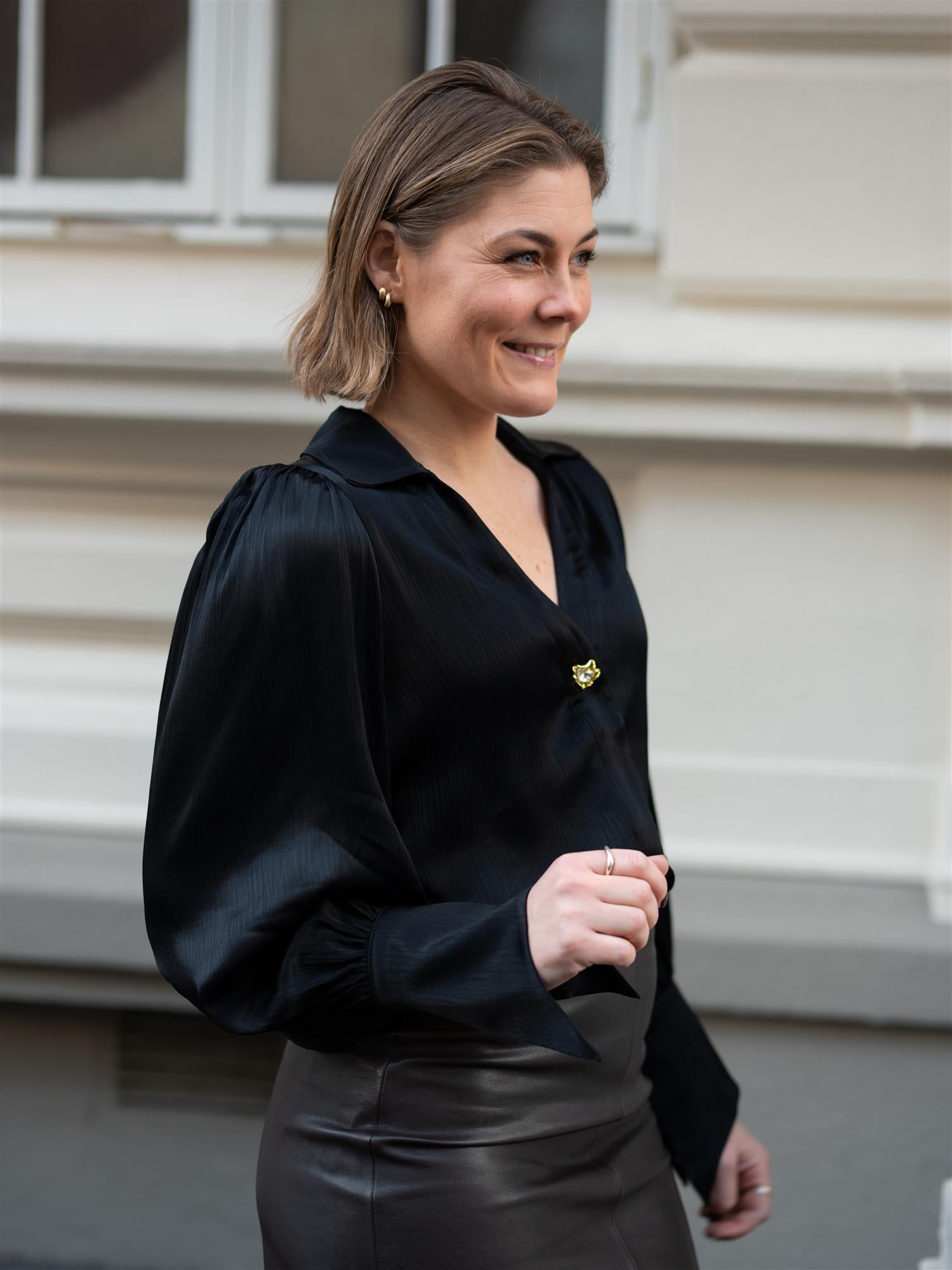 Bluse fra Janne Formoe i klassisk sort. Blusen er designet med lange ballongermer med lekker spiss mansjett, V-hals, nydelig gullfarget knapp i front sammen med skjult knapperekke, og liten puff i skuldrene. Mykt og deilig stoff.