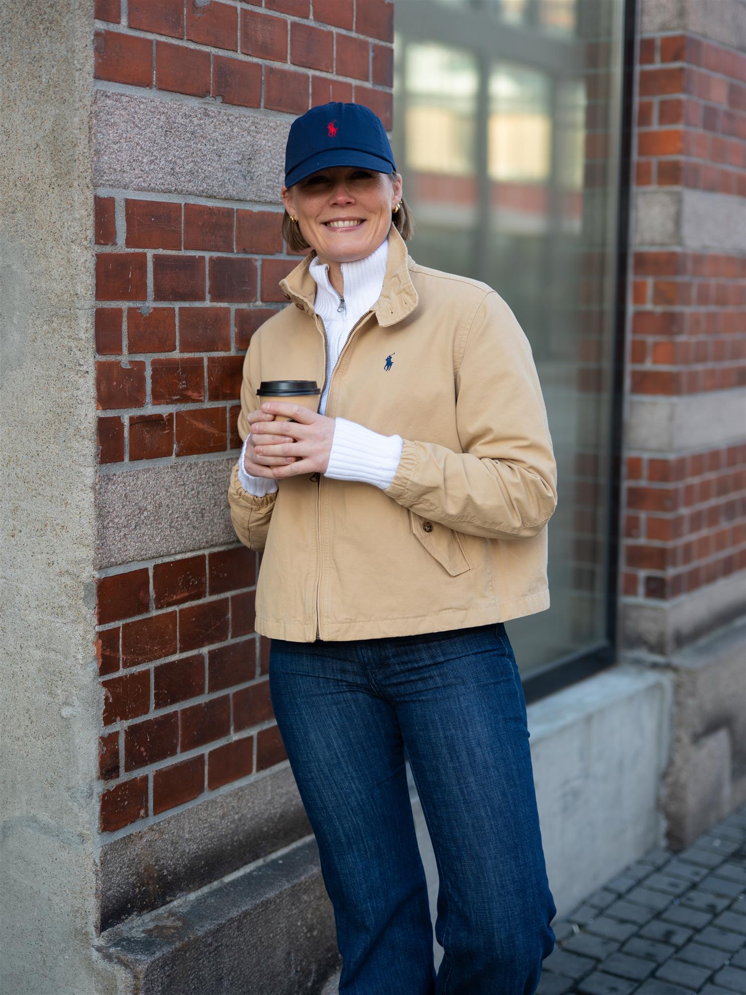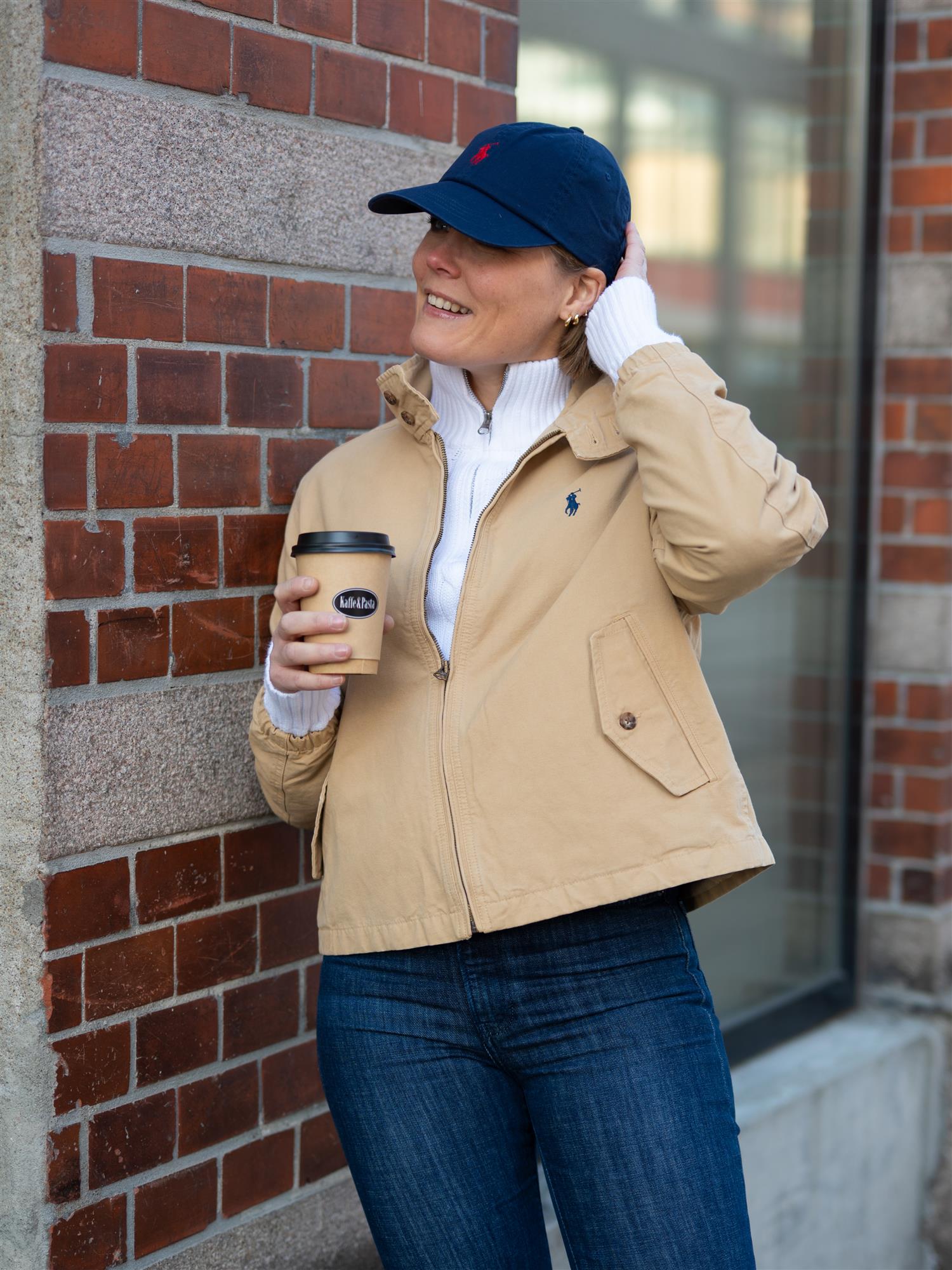 Stilig jakke fra Polo i fargen khaki. Denne helfôrede jakken i bomullskanvas har et litt kort snitt og er designet med en høy krage som kan brettes opp eller ned. Designet for å nå over hoften. Jakken har høy krage med to knapper, glidelås i front, og lange ermer med elastiske mansjetter. To vinklede lommer med knapper foran i midjen. Polo's karakteristiske hestemotiv på venstre bryst.