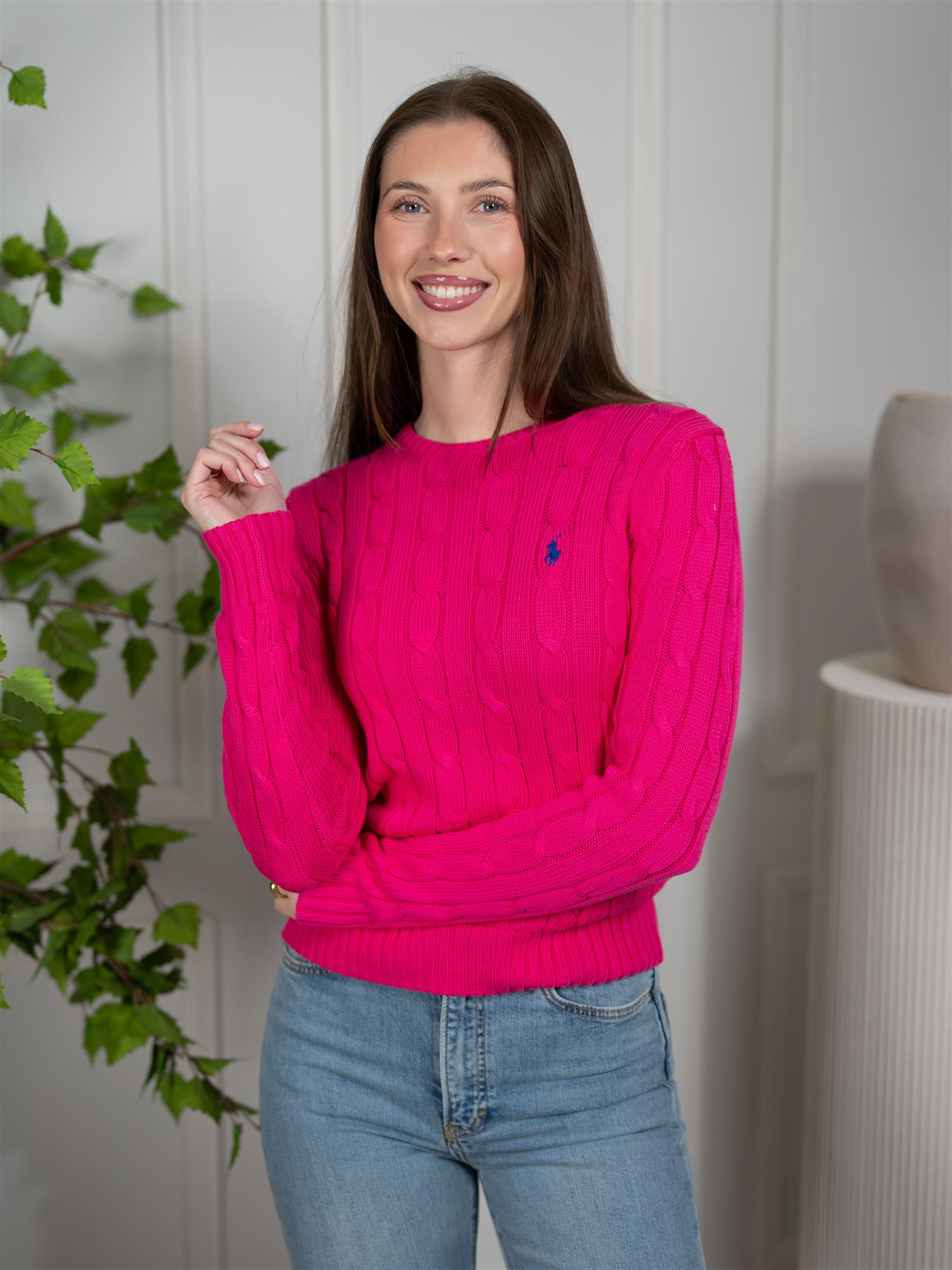 Cable-Knit Cotton Crewneck Sweater Pink fra Polo.
