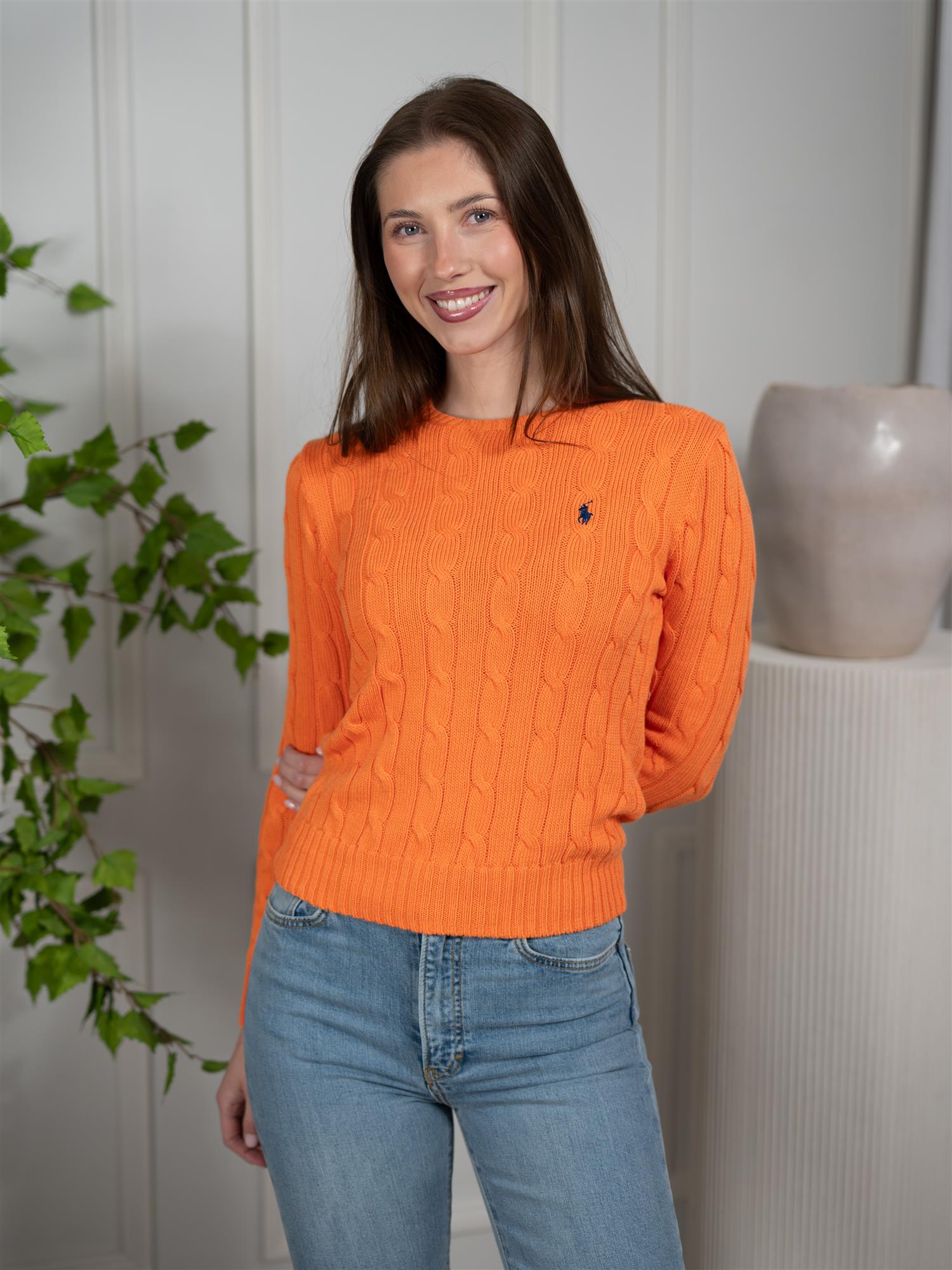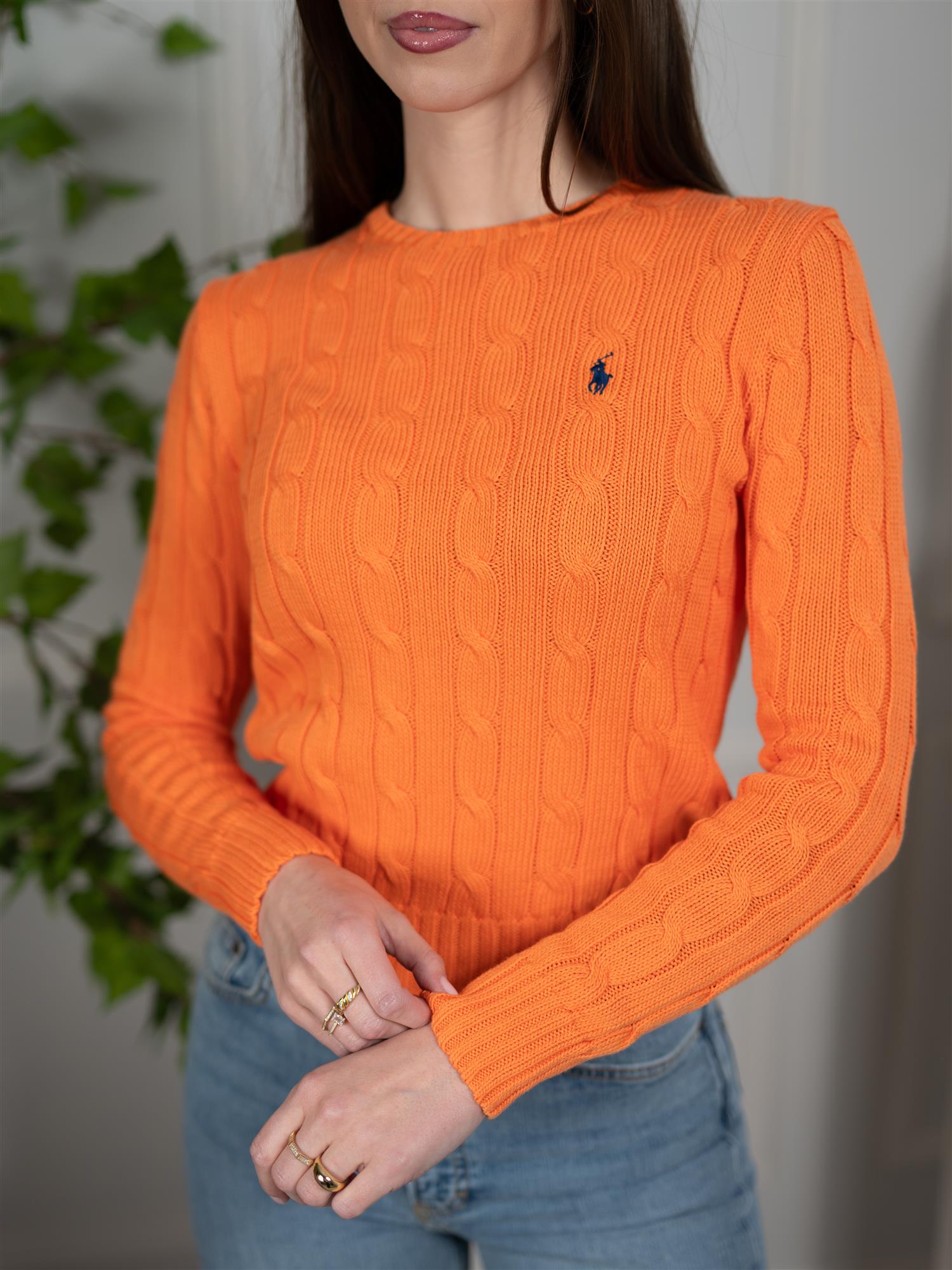 Cable-Knit Cotton Crewneck Sweater Orange fra Polo.