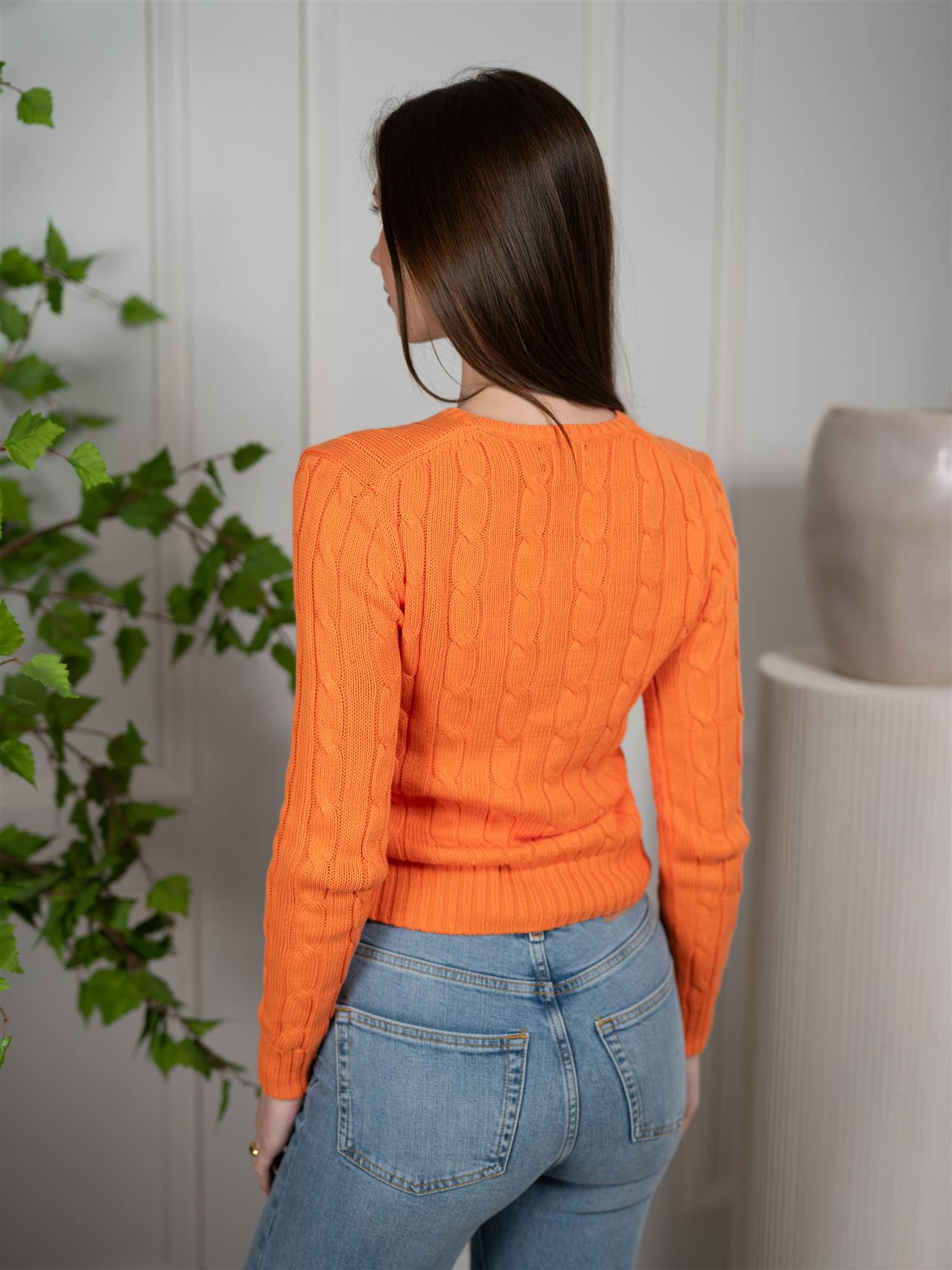 Langermet pullover i en nydelig oransje farge, laget av 100% Pima-bomull for en myk og behagelig følelse. Denne pulloveren er perfekt for hverdagsbruk og gir et stilrent preg til enhver garderobe. Designet med rund hals og ettersittende passform.