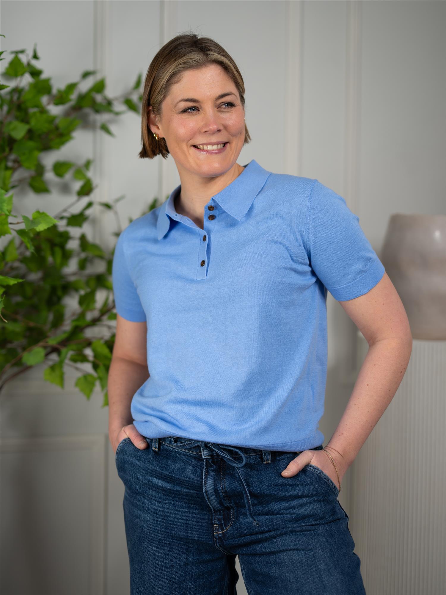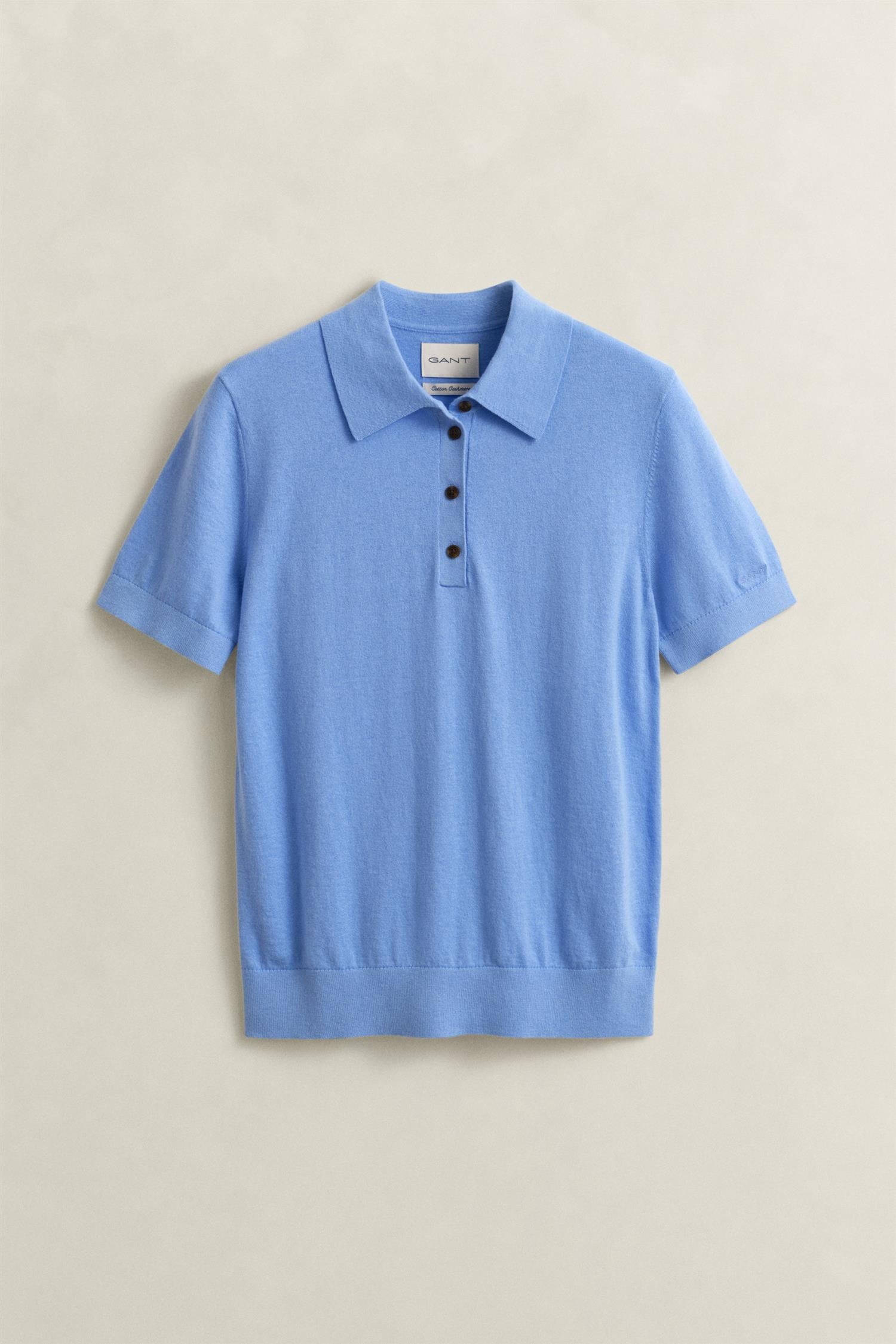 Light Knit Ss Rugger fra Gant i fargen Hydrangea Blue er en strikket t-skjorte med krage og knapper. Dette er et stilrent og komfortabelt plagg som passer perfekt for hverdagsbruk. Den lette strikkede kvaliteten gir en behagelig følelse mot huden, samtidig som den gir et moderne utseende.