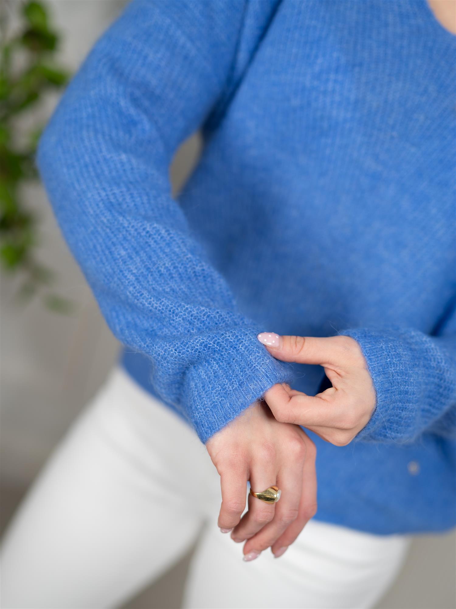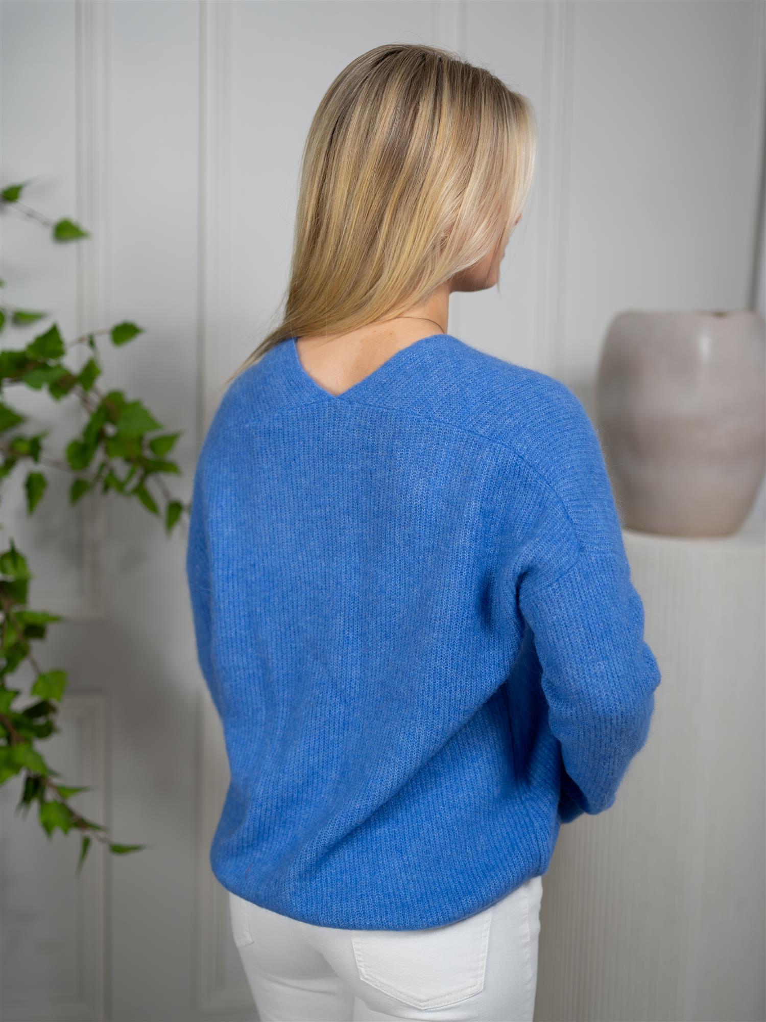 MMThora V-Neck Knit er en stilren og komfortabel genser som passer perfekt til hverdagsbruk. Den dype V-halsen gir et moderne preg, mens det myke materialet sikrer en behagelig passform. Fargen heter Ultramarine og er en sterk blå nyanse.