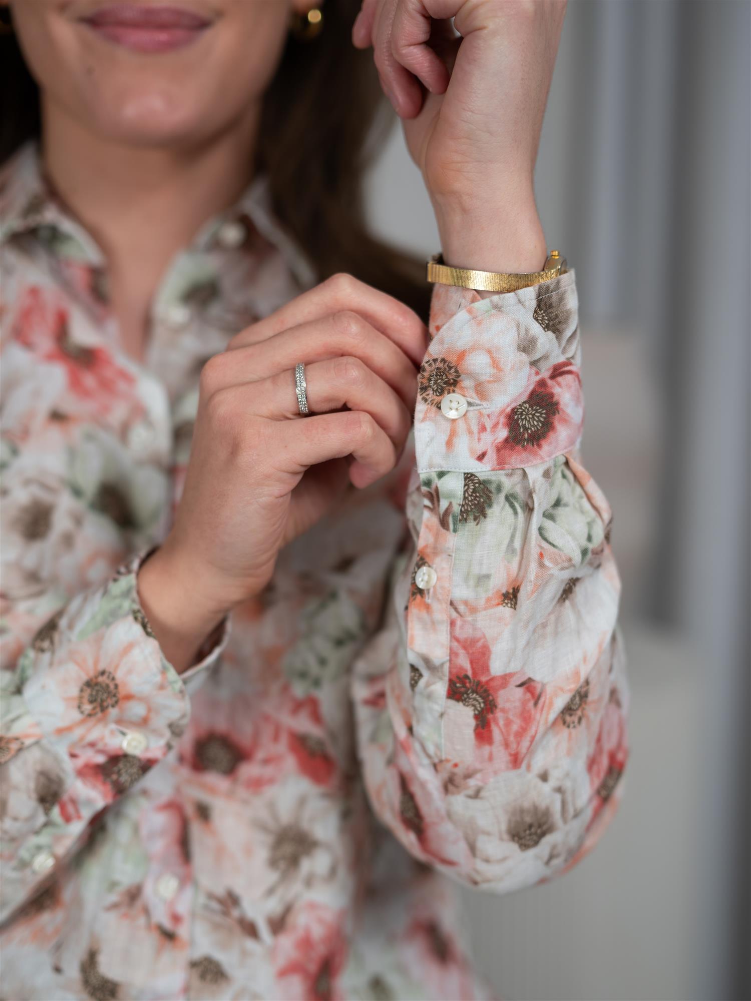 Tidløs og elegant lin skjorte i blomstrete mønster i lyse orange toner fra Stenströms. Den er rett i modellen med krage, enkle mansjetter og knapper i front. Skjorte er laget av lin, noe som gir den en lett og luftig følelse og er fin på varme dager. Fin alene eller bruk over en singlet, til både jeans, shorts og skjørt!