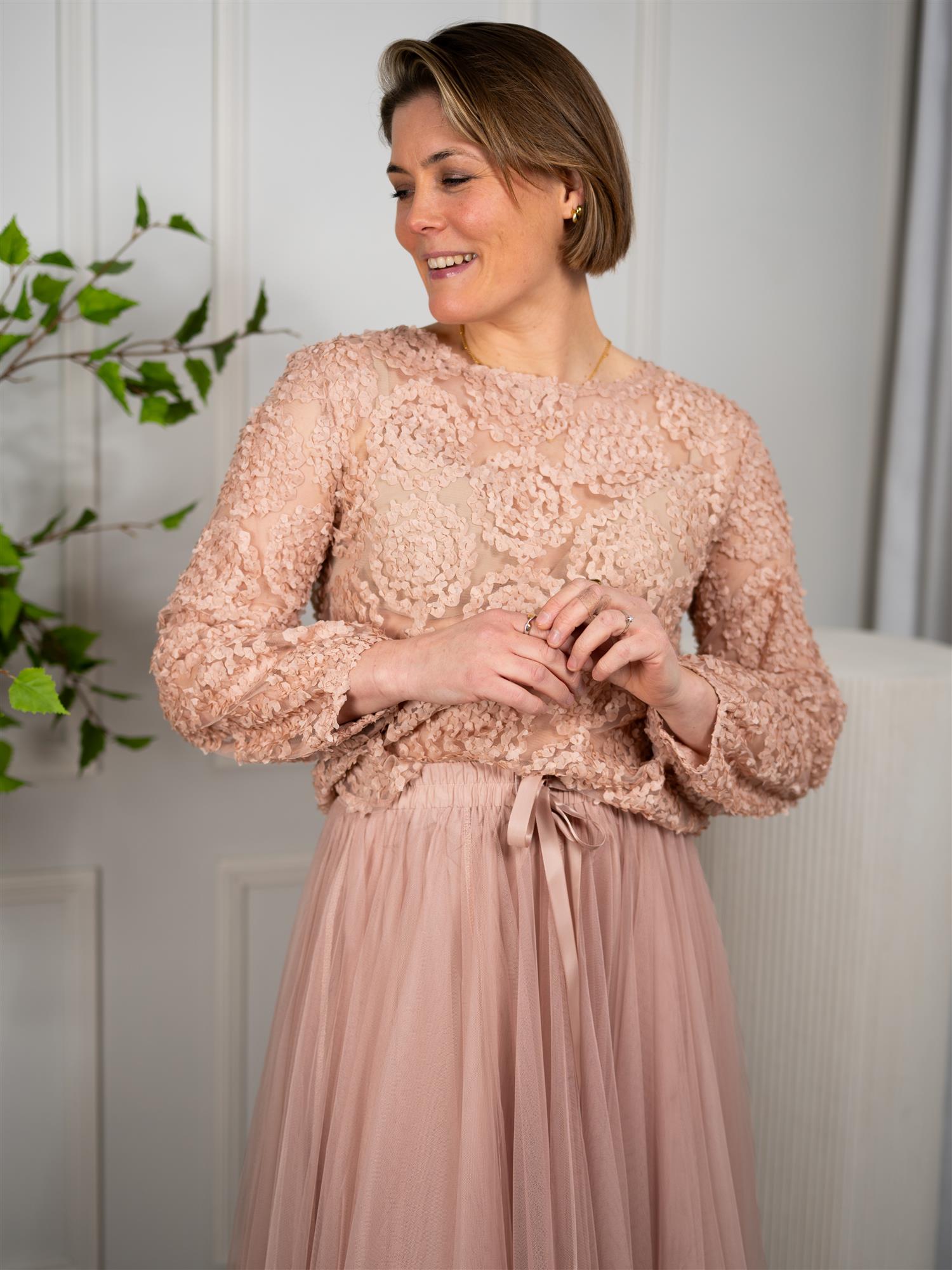 Lekker blondetopp fra Choklate Paris. Toppen er rett i fasongen og har voluminøse ermer. Det er strikk i håndleddene.