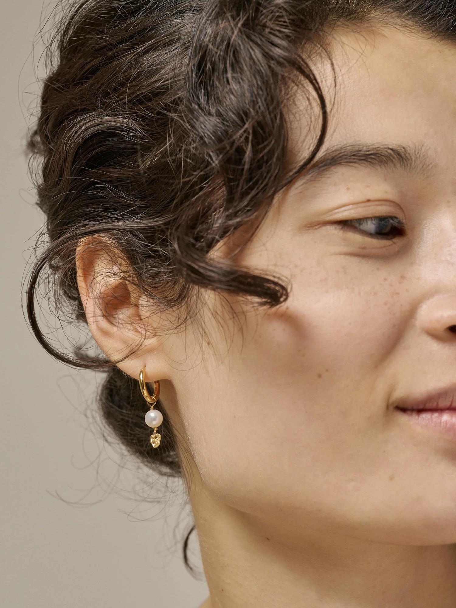 Cara hoops i 925 sterling sølv, belagt med 18 karat gull, er et par lekne og dynamiske øreringer med sceniske detaljer. Det avtagbare perleanhenget gir et elegant preg, og Cara er enkel å kombinere med nesten alle typer små, delikate øreringer.