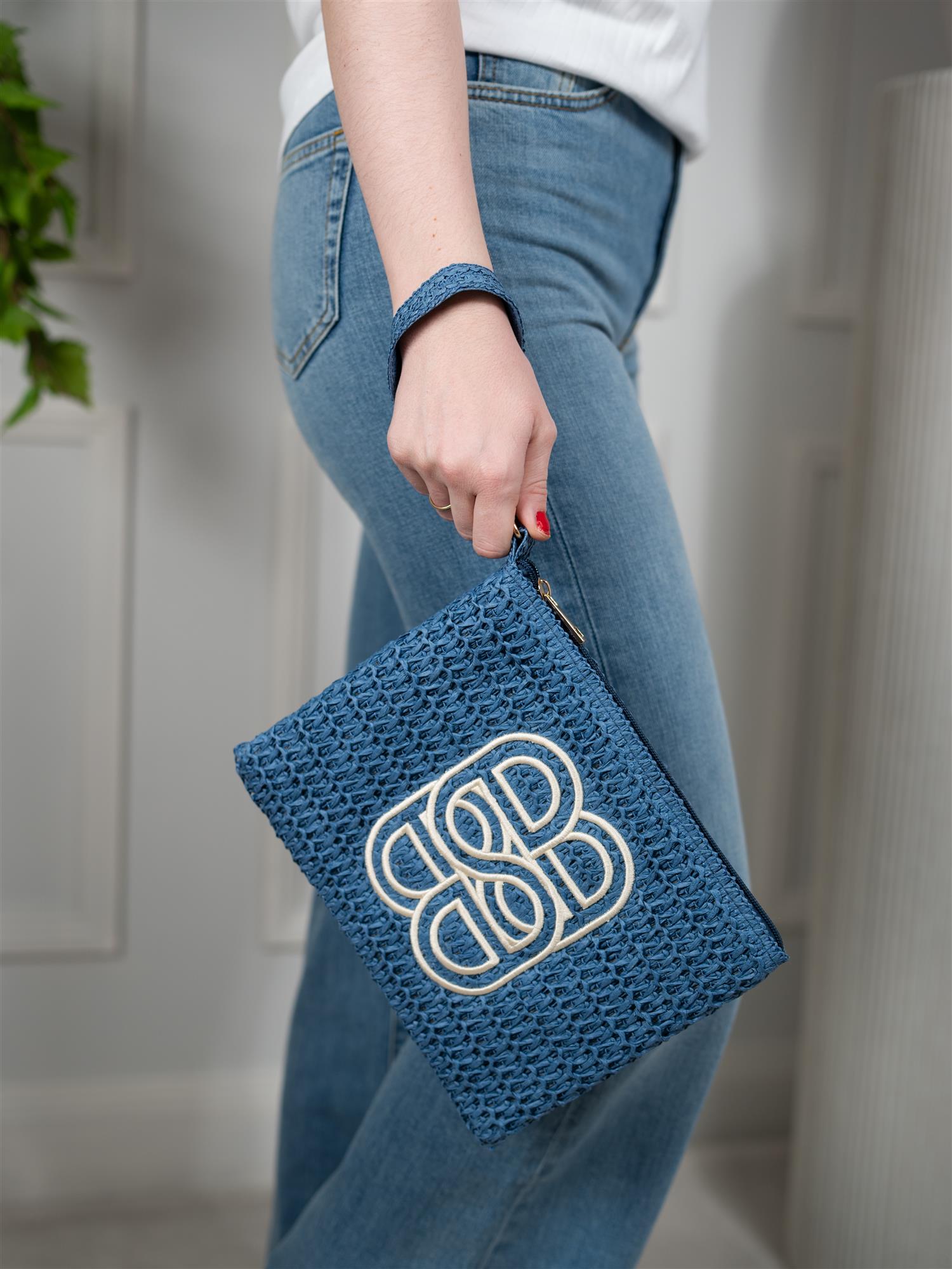 Ella&il Mim Straw Clutch Blue