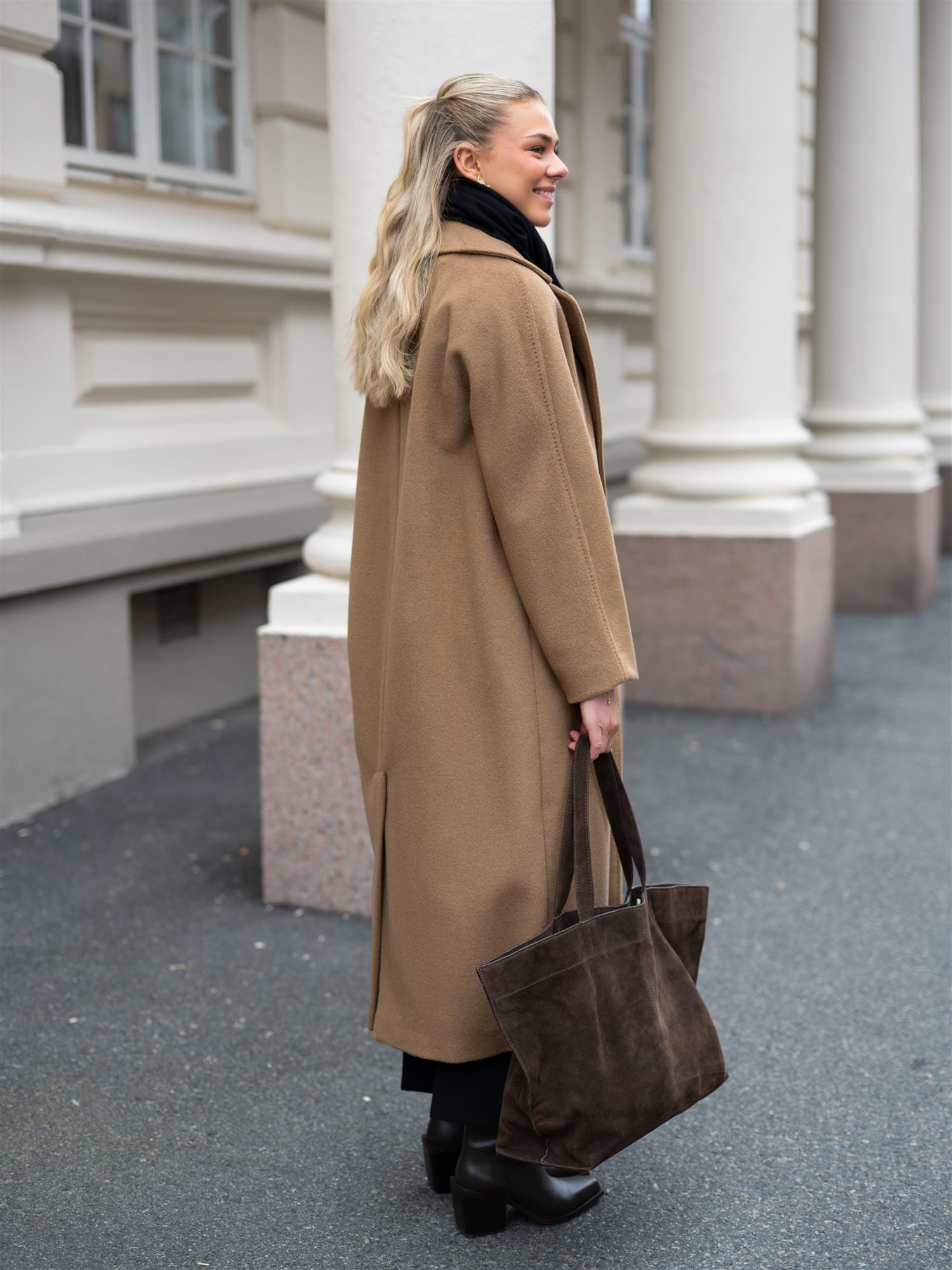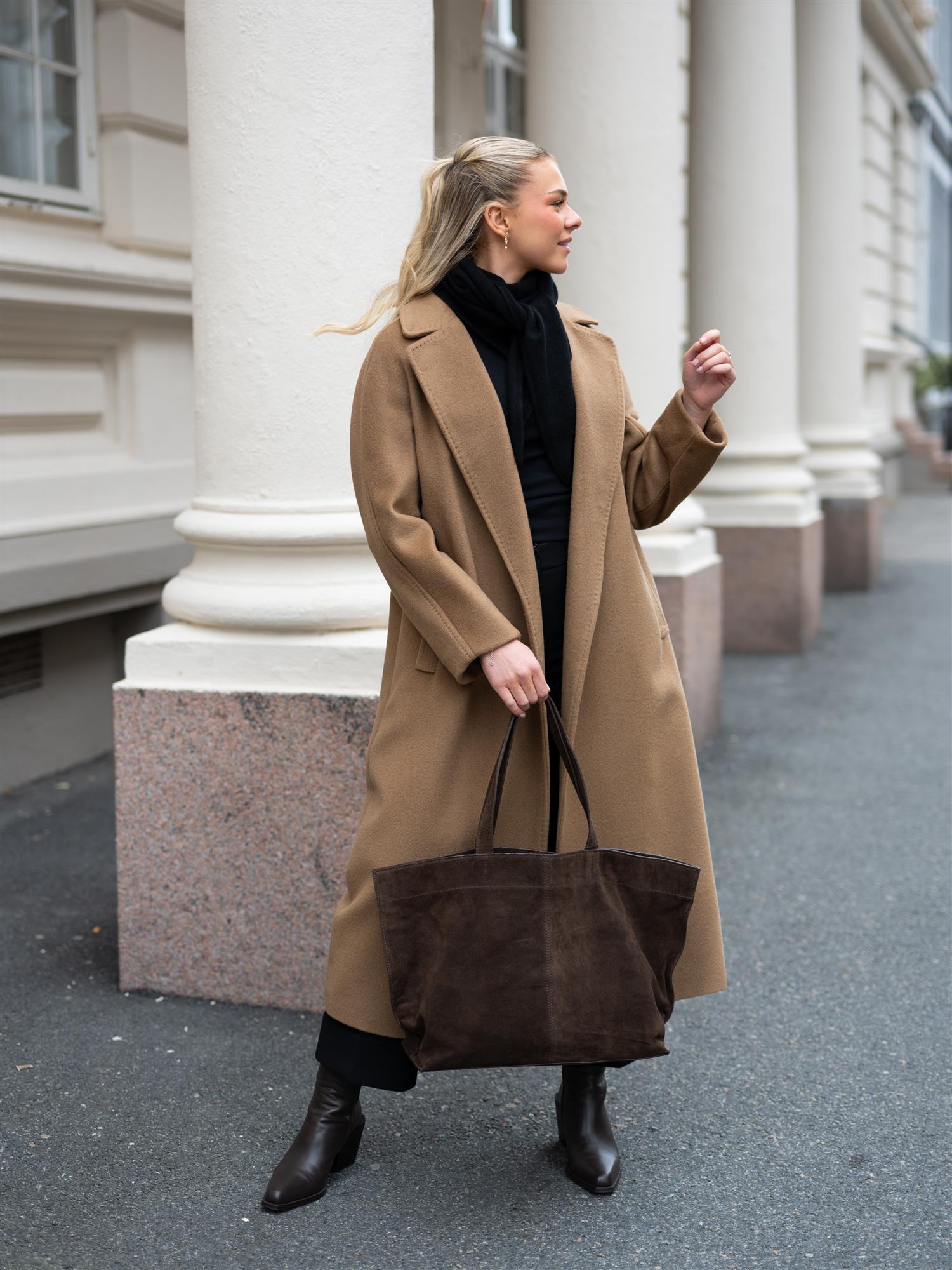 Laget av 48% ull, 22% alpakka, 15% polyamid og 15% mohair. Fôret er laget av 100% viskose.