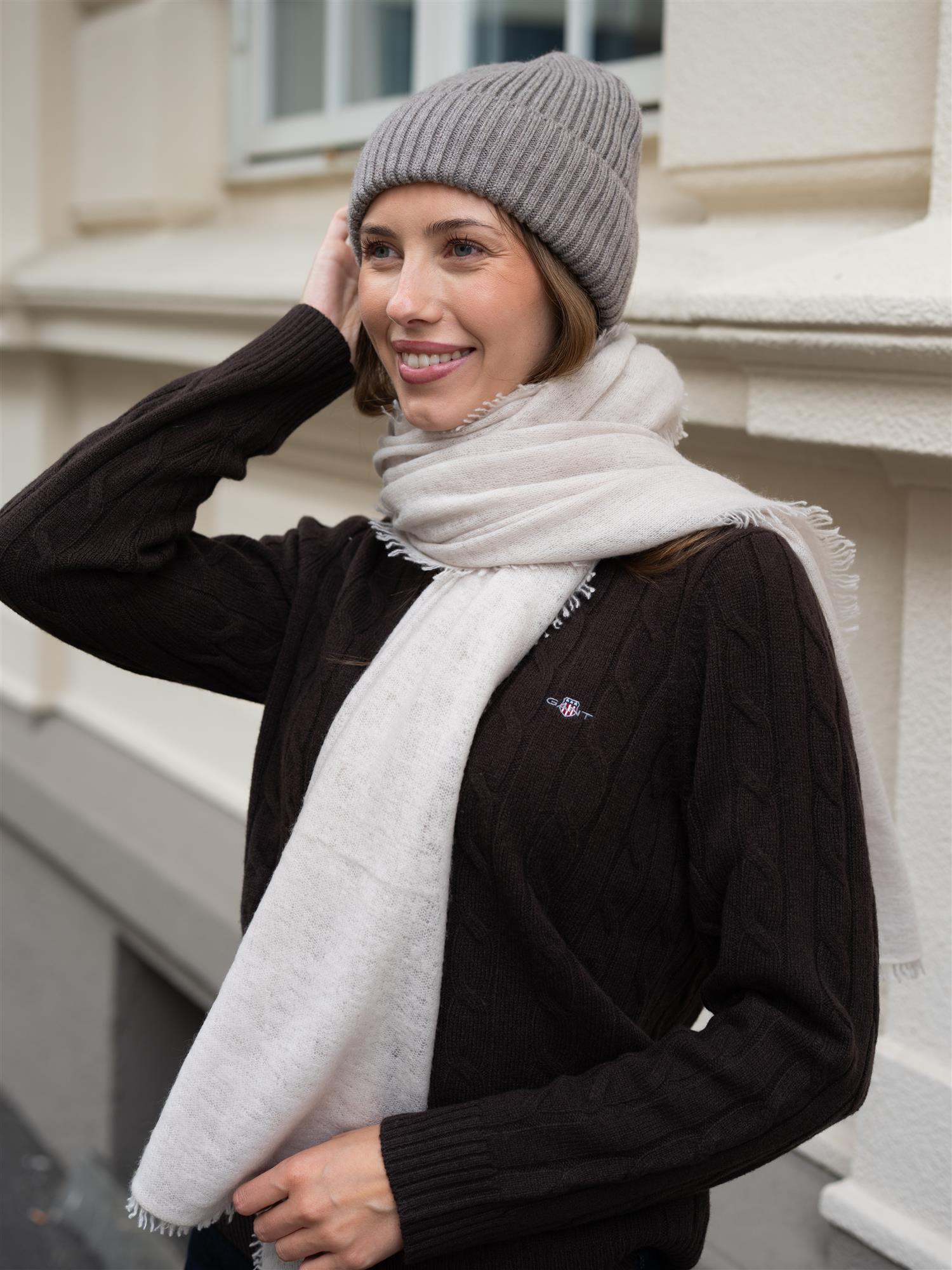 Skjerfet måler 80 x 190 cm.